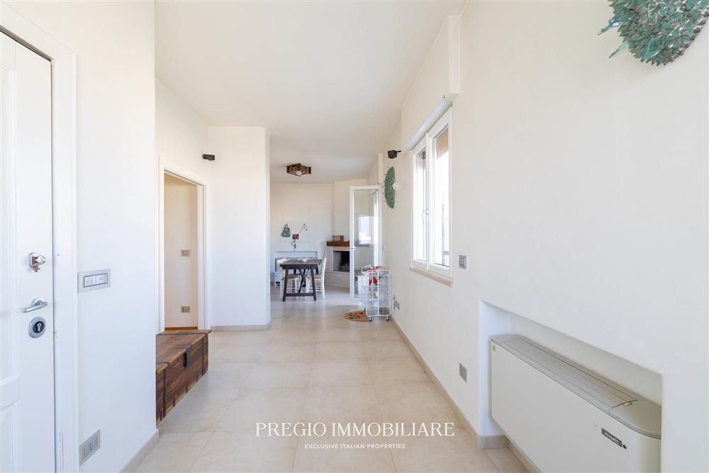L’immobile si sviluppa su un unico livello e dispone di tre camere da letto matrimoniali, due bagni. L’ingresso introduce in un ampio soggiorno con cucina a vista, reso particolarmente luminoso dalle grandi aperture vetrate che collegano armoniosamente gli interni alla terrazza. L’esposizione tripla garantisce luce naturale in ogni momento della giornata e una piacevole ventilazione costante.