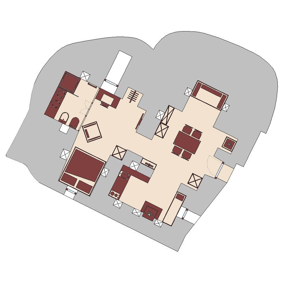 Ogni unità abitativa è in restaurazione curata da un Maestro Trullaro Cisterninese con generazioni di esperienza, conservando la struttura originaria e arricchendola con elementi contemporanei di comfort e design. I trulli si distinguono per dimensioni, tipologia e dettagli architettonici, offrendo da 2 a 4 posti letto. Alcuni custodiscono una grotta privata con vasca idromassaggio o sauna, altri dispongono di camino, galleria interna o vista panoramica sulla campagna.