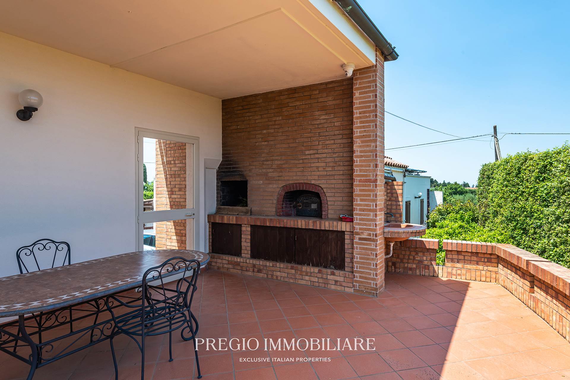 All’esterno, la piscina interrata con area relax in muratura crea un ambiente perfetto per godere appieno degli spazi esterni, mentre il giardino è servito da impianto di irrigazione automatizzato.