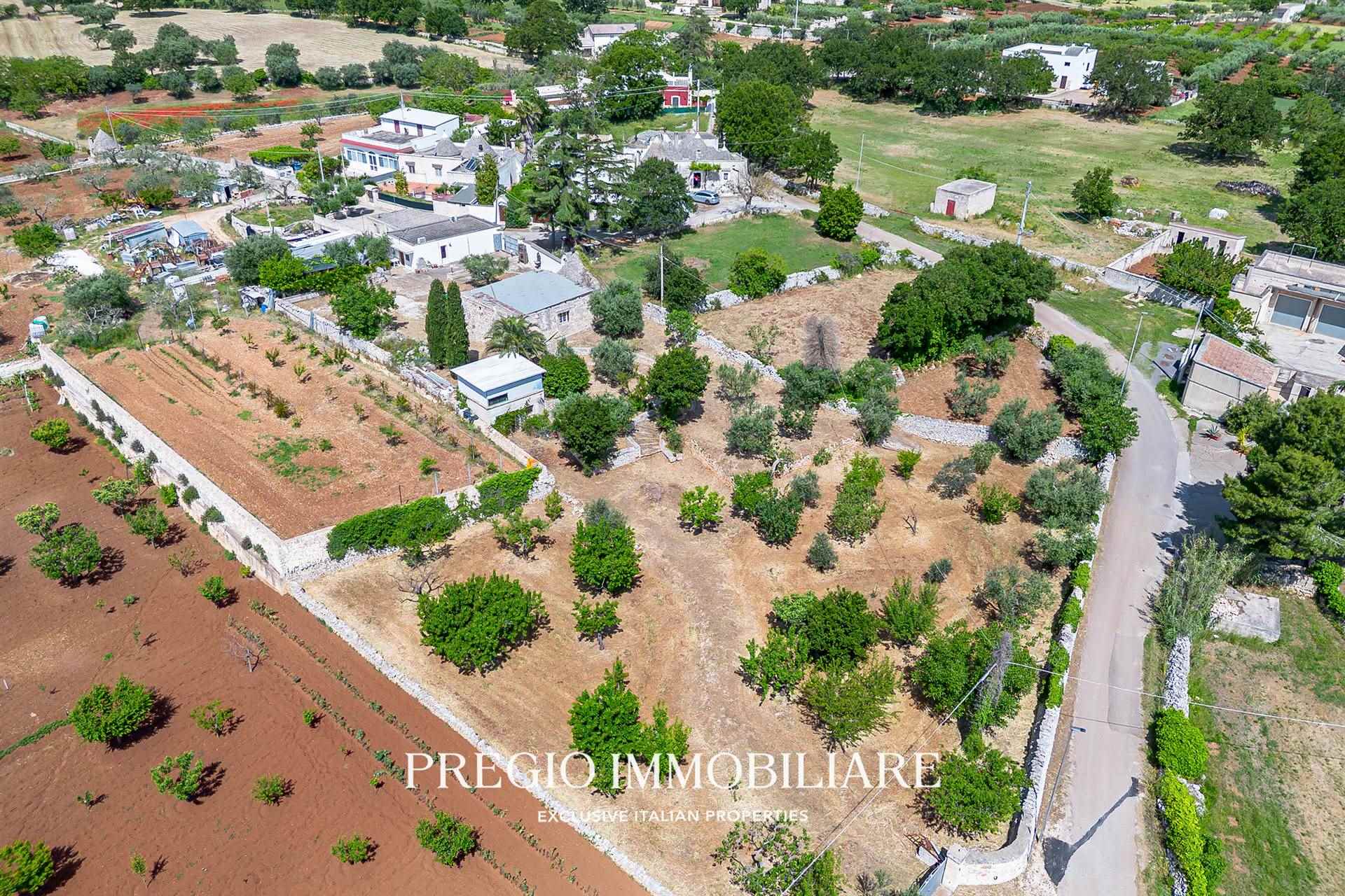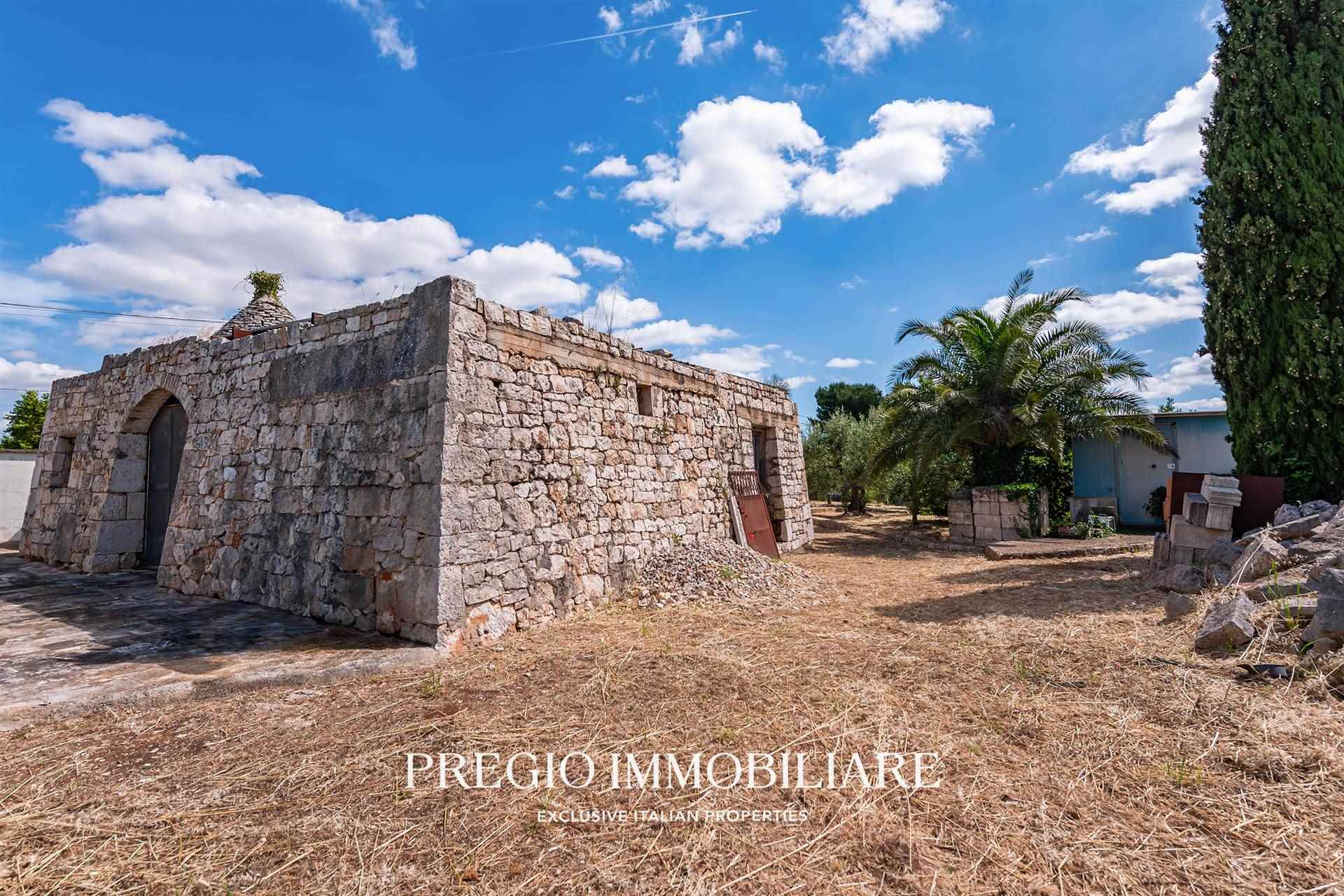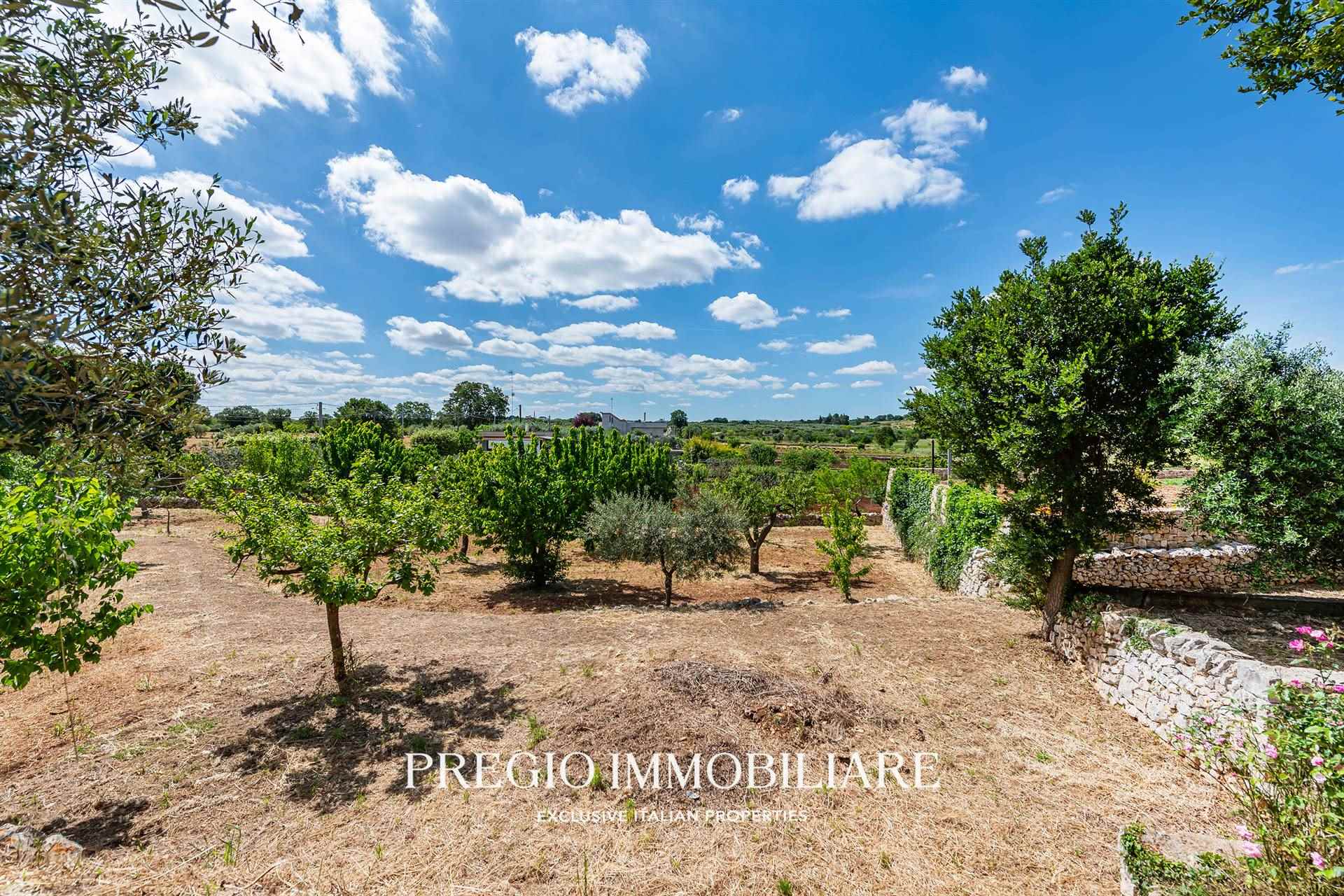 A completare la proprietà, due magazzini per un totale di 45 mq e un vasto terreno circostante, impreziosito da un rigoglioso mandorleto e uliveti secolari, simbolo autentico del paesaggio pugliese.