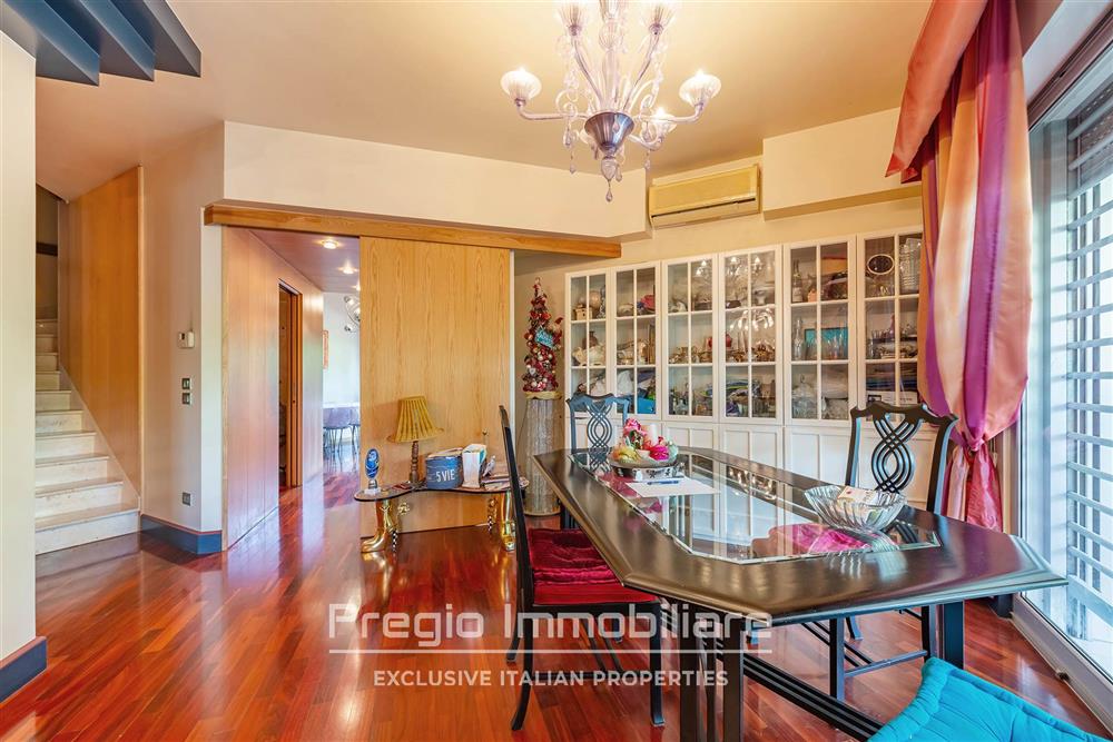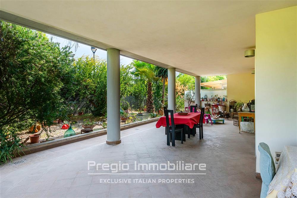L’appartamento si sviluppa su più livelli e offre una zona giorno ampia e luminosa. Al piano terra si trovano un doppio salone, un’area pranzo ben distribuita e una cucina a vista moderna. Il bagno di servizio completa la funzionalità del livello. Dal living si accede a un portico coperto che amplia lo spazio abitabile. La normativa vigente consente la chiusura con strutture rimovibili, offrendo la possibilità di ottenere metratura aggiuntiva da utilizzare durante tutto l’anno. Il giardino privato assicura privacy e fruibilità degli spazi esterni.