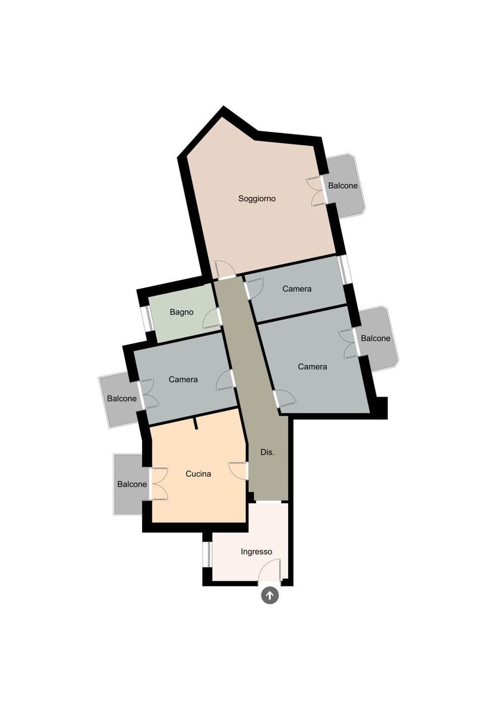 Gli ambienti sono ben proporzionati e funzionali: zona giorno con soggiorno e cucina abitabile separata, entrambi con accesso al balcone, e zona notte con tre camere che si prestano a uso famiglia, studio o stanza ospiti. Il bagno è finestrato e di comode dimensioni, perfetto per l’utilizzo quotidiano.