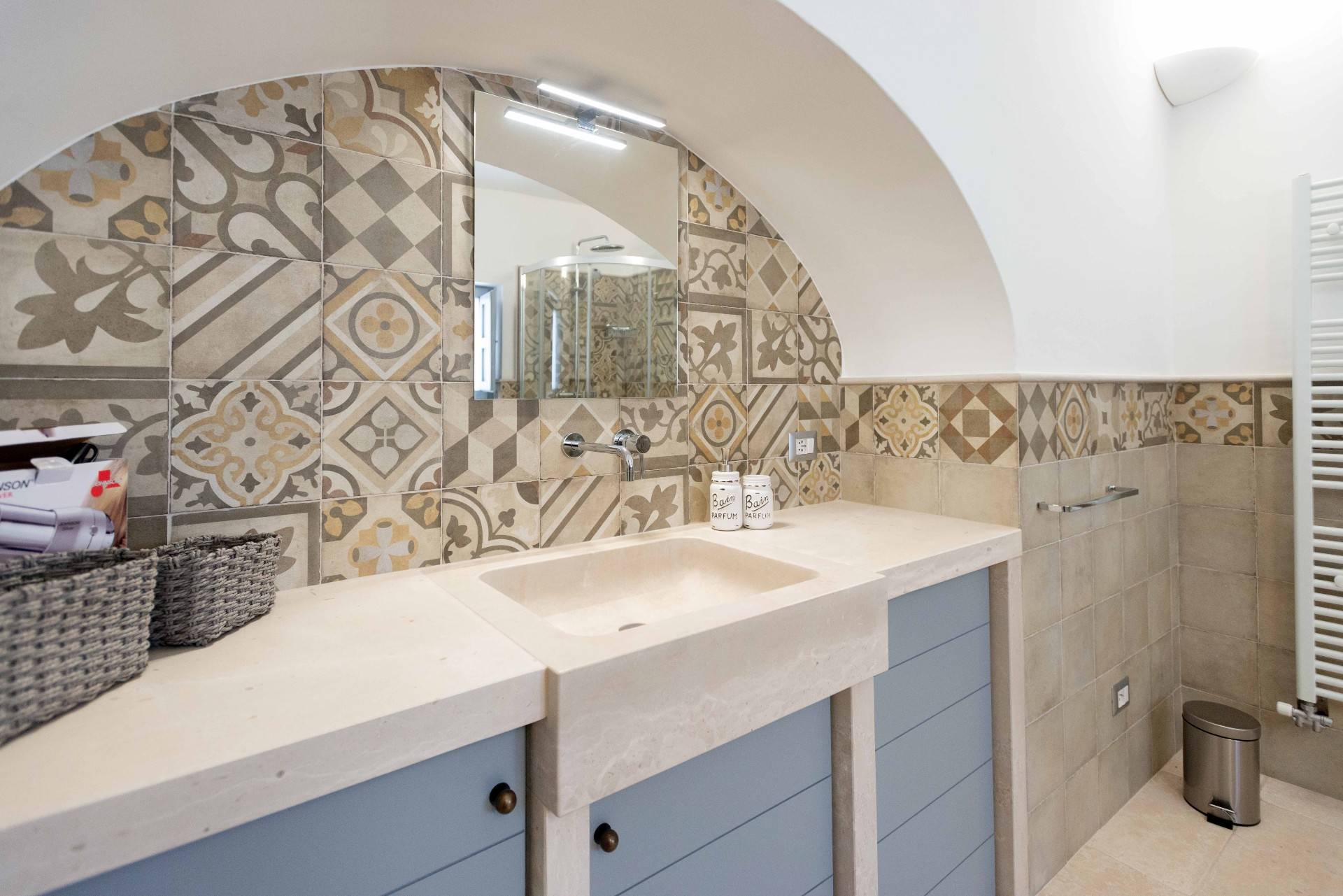 All’esterno, il terreno circostante si estende in tutta la sua accattivante bellezza, ricco di ulivi secolari e contornato da muretti a secco restaurati con maestria secondo la tradizione dei mastri trullari. Fiore all’occhiello è la piscina, immersa nel verde in tutta la sua eleganza e attrezzata di una zona ristoro in patio, dove poter godere di piacevoli momenti all’aperto.
