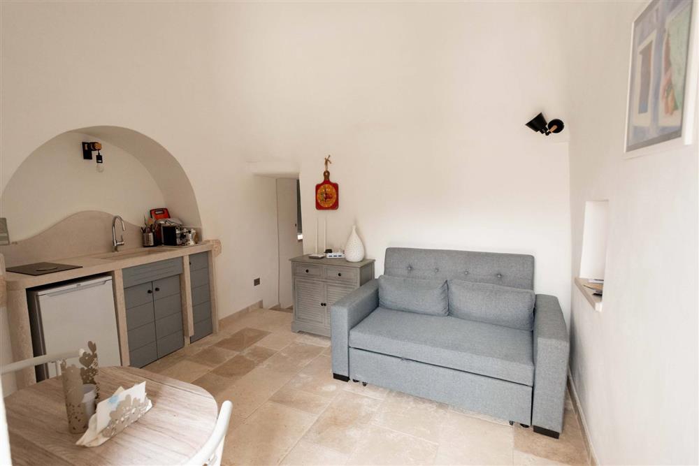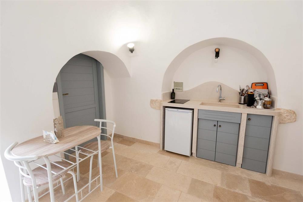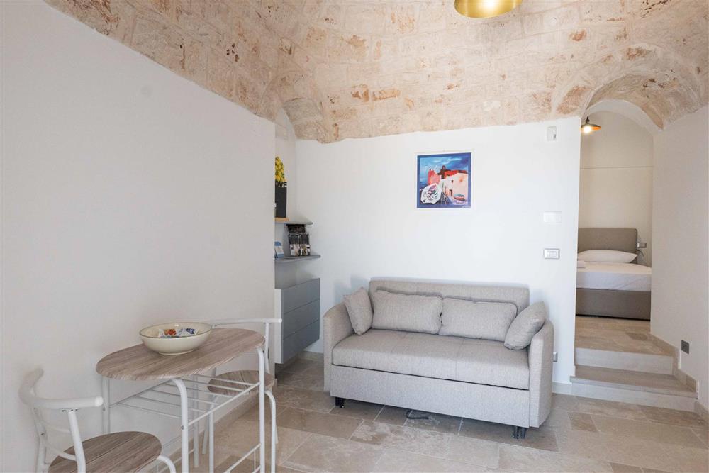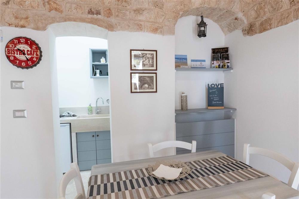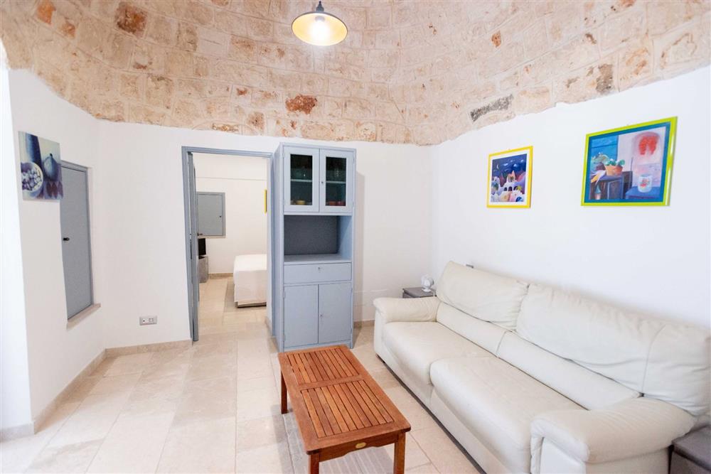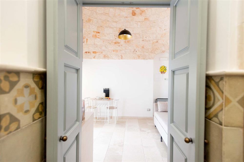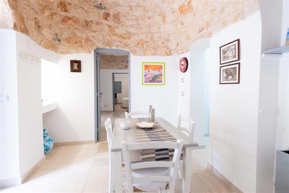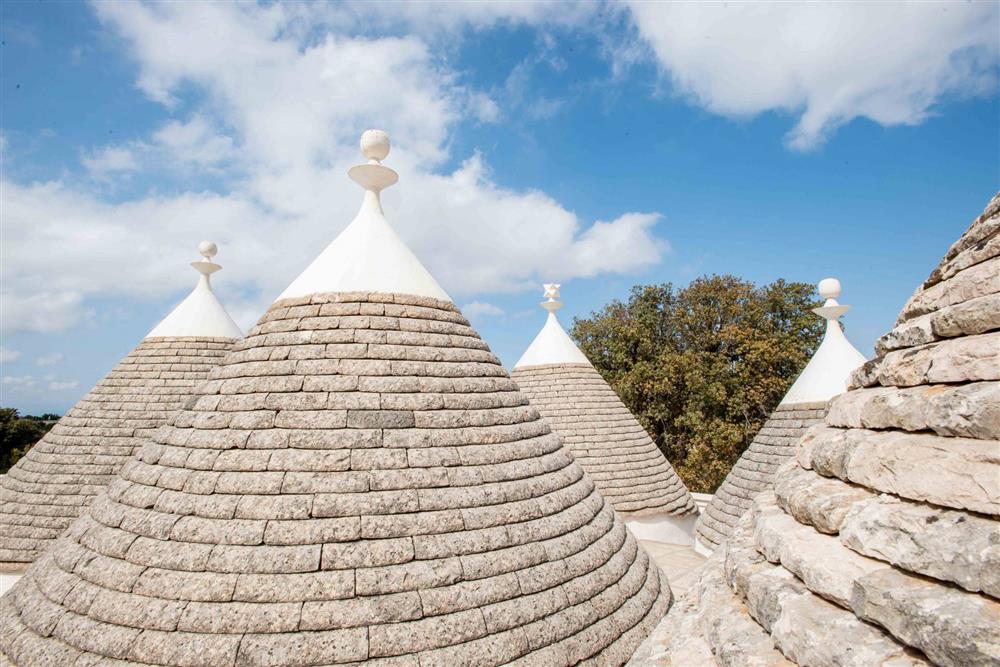 L’immobile si suddivide in tre appartamenti, contando in totale sette trulli a cono e offrendo una superficie complessiva di 140 mq. Ogni appartamento presenta una camera matrimoniale, angolo cottura, sala da pranzo e bagno con doccia, nonché di uno spazio esterno dedicato. Gli interni incantano per le raffinate scelte di design, la cura dei particolari, i pavimenti in chianche, le suggestive volte a botte e i muri in pietra viva.