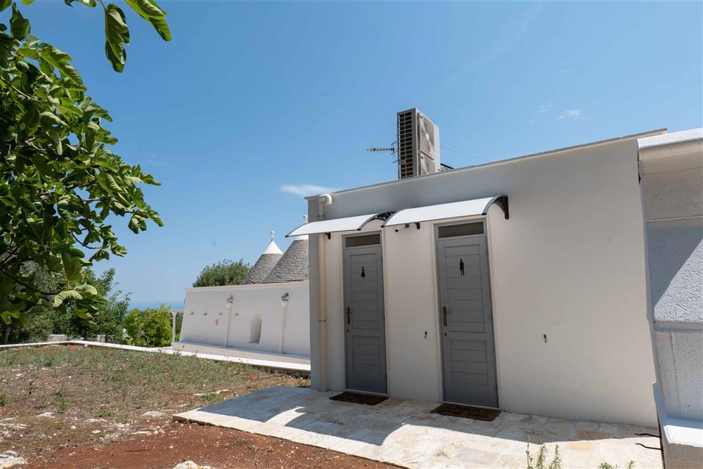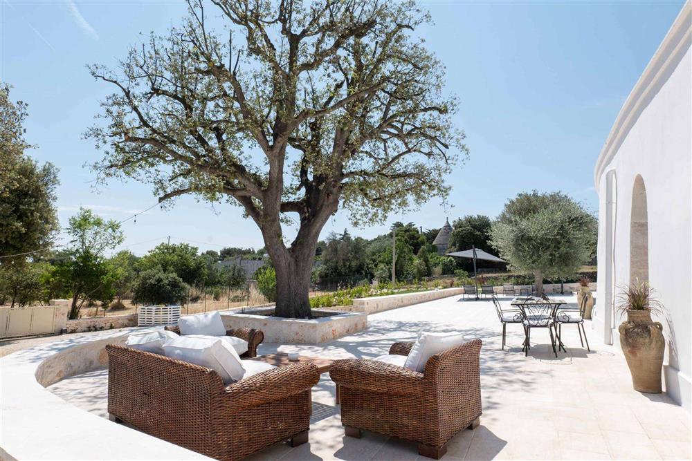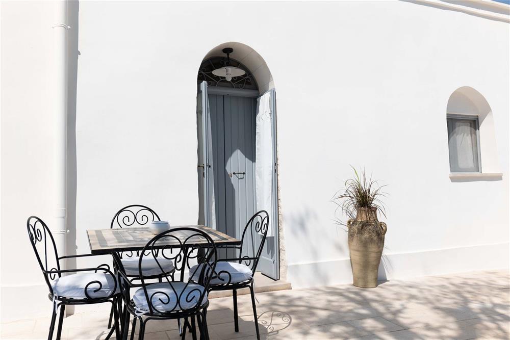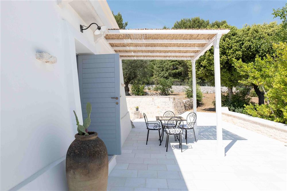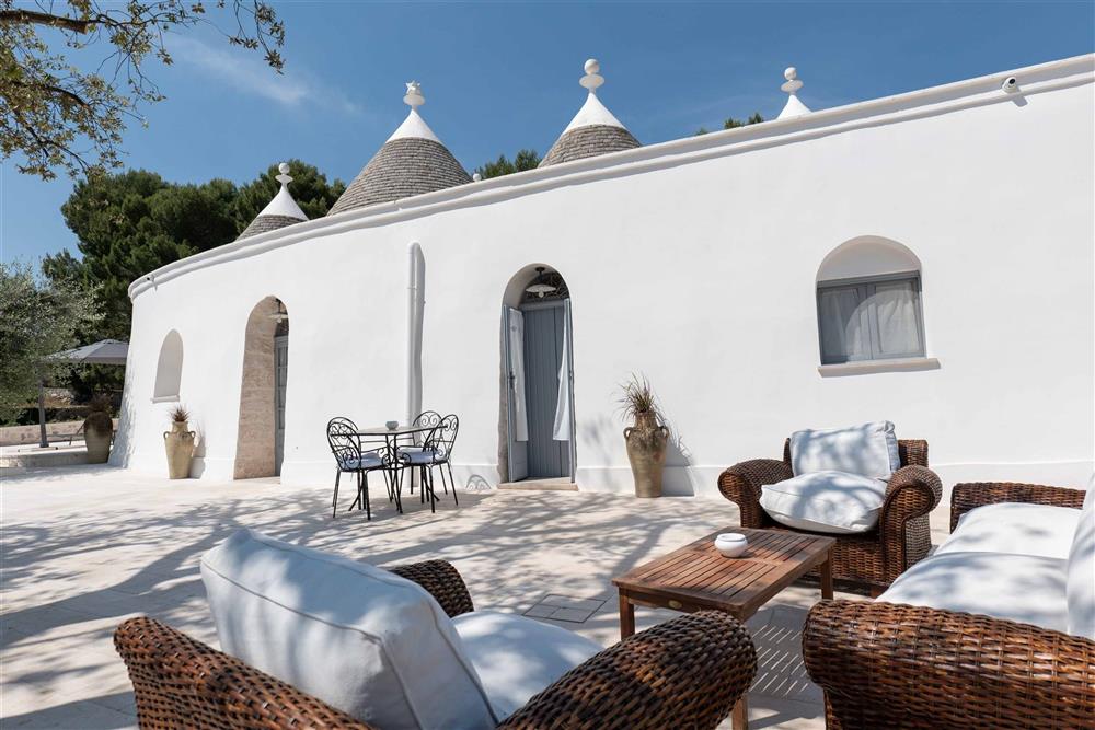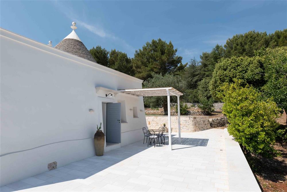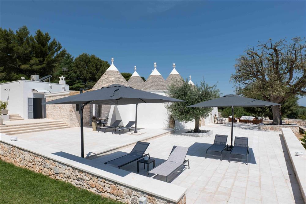 All’esterno, il terreno circostante si estende in tutta la sua accattivante bellezza, ricco di ulivi secolari e contornato da muretti a secco restaurati con maestria secondo la tradizione dei mastri trullari. Fiore all’occhiello è la piscina, immersa nel verde in tutta la sua eleganza e attrezzata di una zona ristoro in patio, dove poter godere di piacevoli momenti all’aperto.