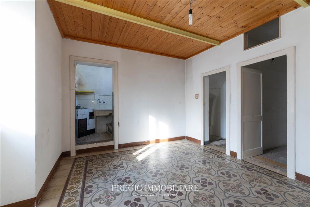 Il piano principale è dedicato alla zona giorno, con soggiorno e cucina abitabile separati. Il livello superiore ospita la zona notte, composta da due camere da letto e un bagno. La chiara distinzione funzionale tra i livelli consente una gestione ordinata degli spazi, adatta sia a un utilizzo residenziale sia a una diversa organizzazione interna in fase di rinnovamento.