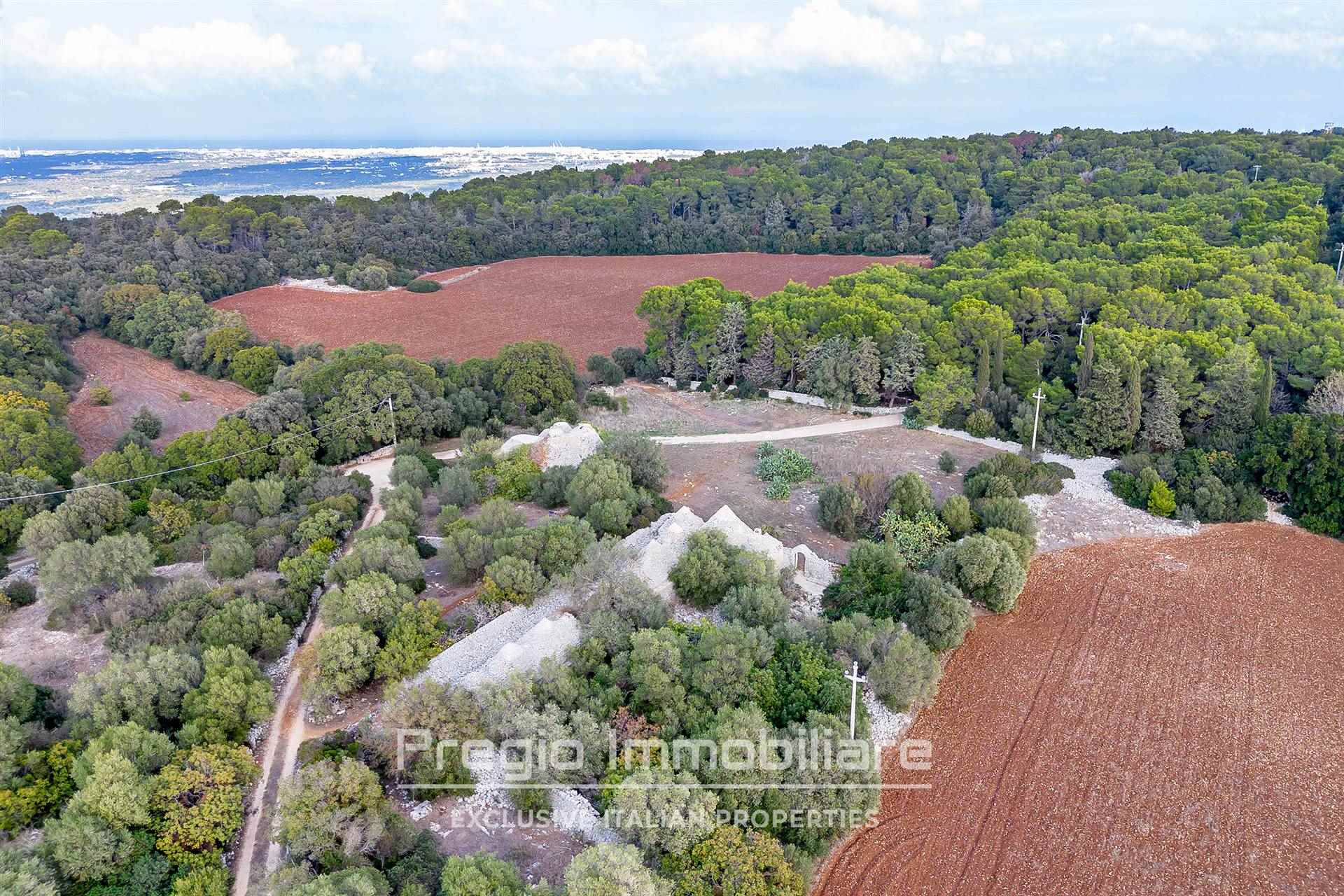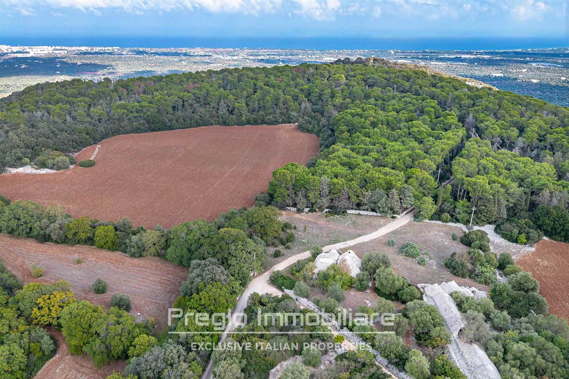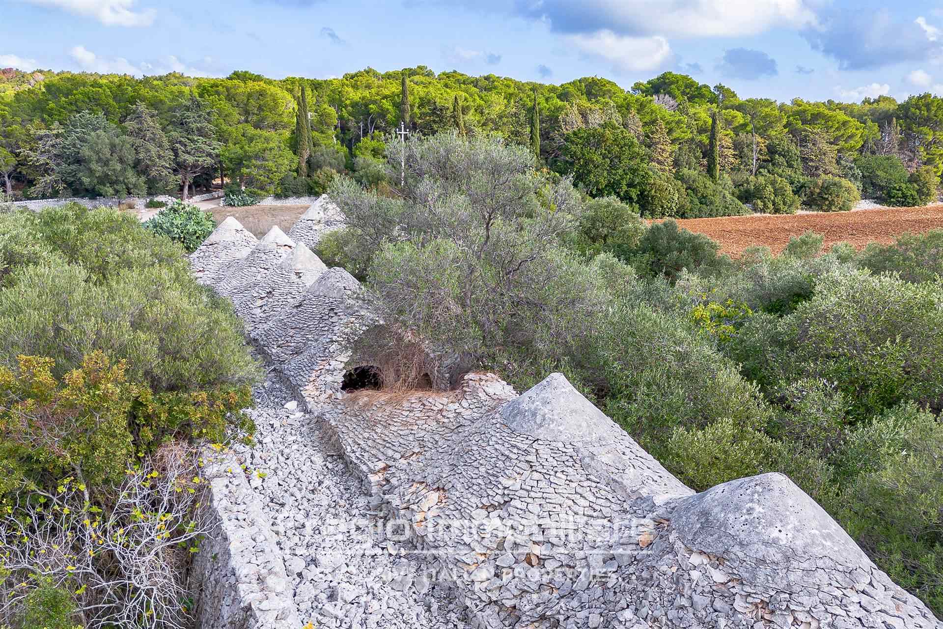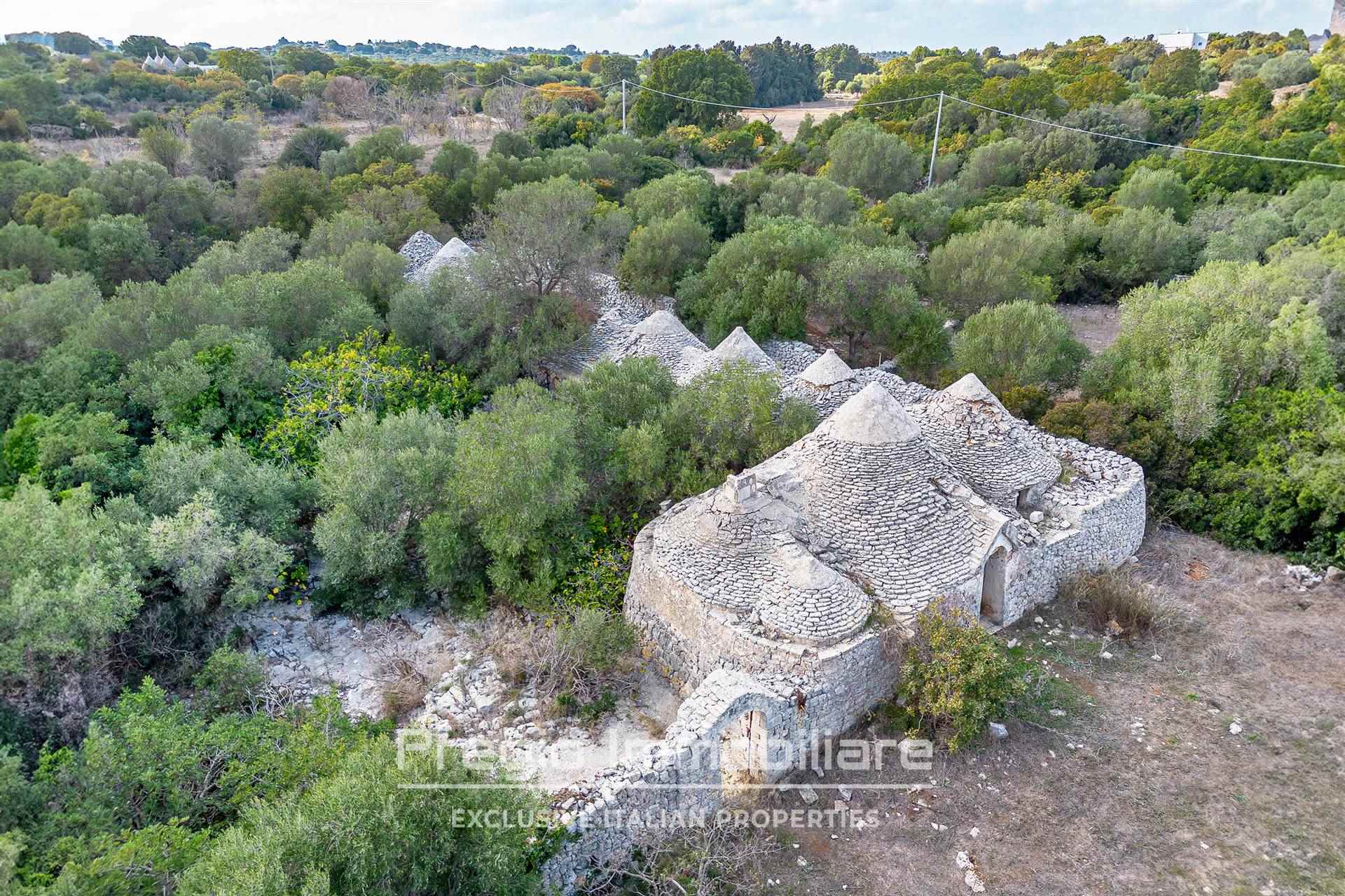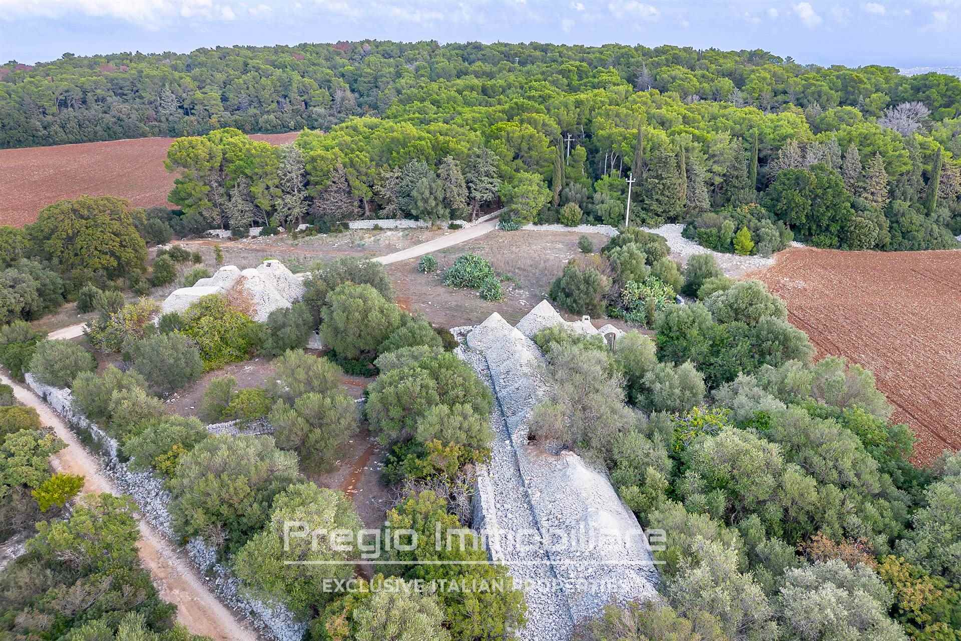 Il complesso si compone di 17 trulli autentici, che offrono l’opportunità di essere restaurati per valorizzare il loro prezioso patrimonio architettonico. Originariamente utilizzati come stalle, mangiatoie, frantoi e abitazioni, questi trulli rappresentano la base ideale per realizzare una dimora esclusiva che unisce tradizione e comfort moderni. La proprietà si estende su oltre 32 ettari, di cui 6 destinati a seminativo e 25 a bosco, una vera tenuta che garantisce privacy e tranquillità. I sentieri che attraversano il bosco sono ideali per passeggiate o momenti di relax immersi nella natura.