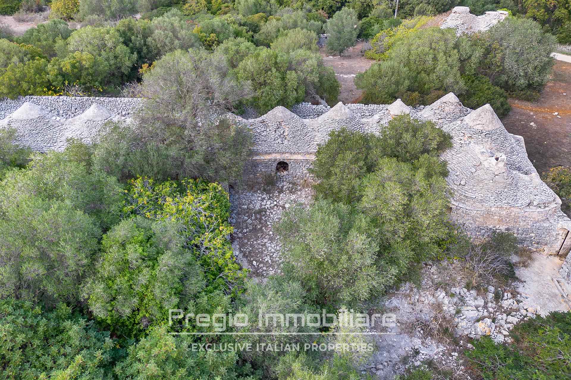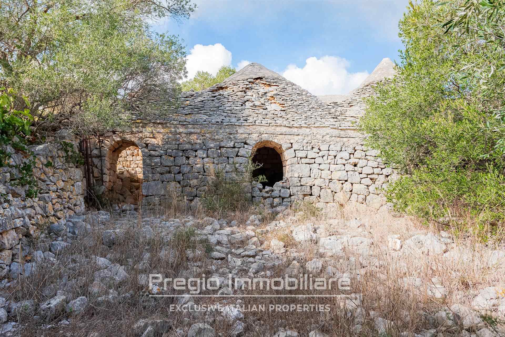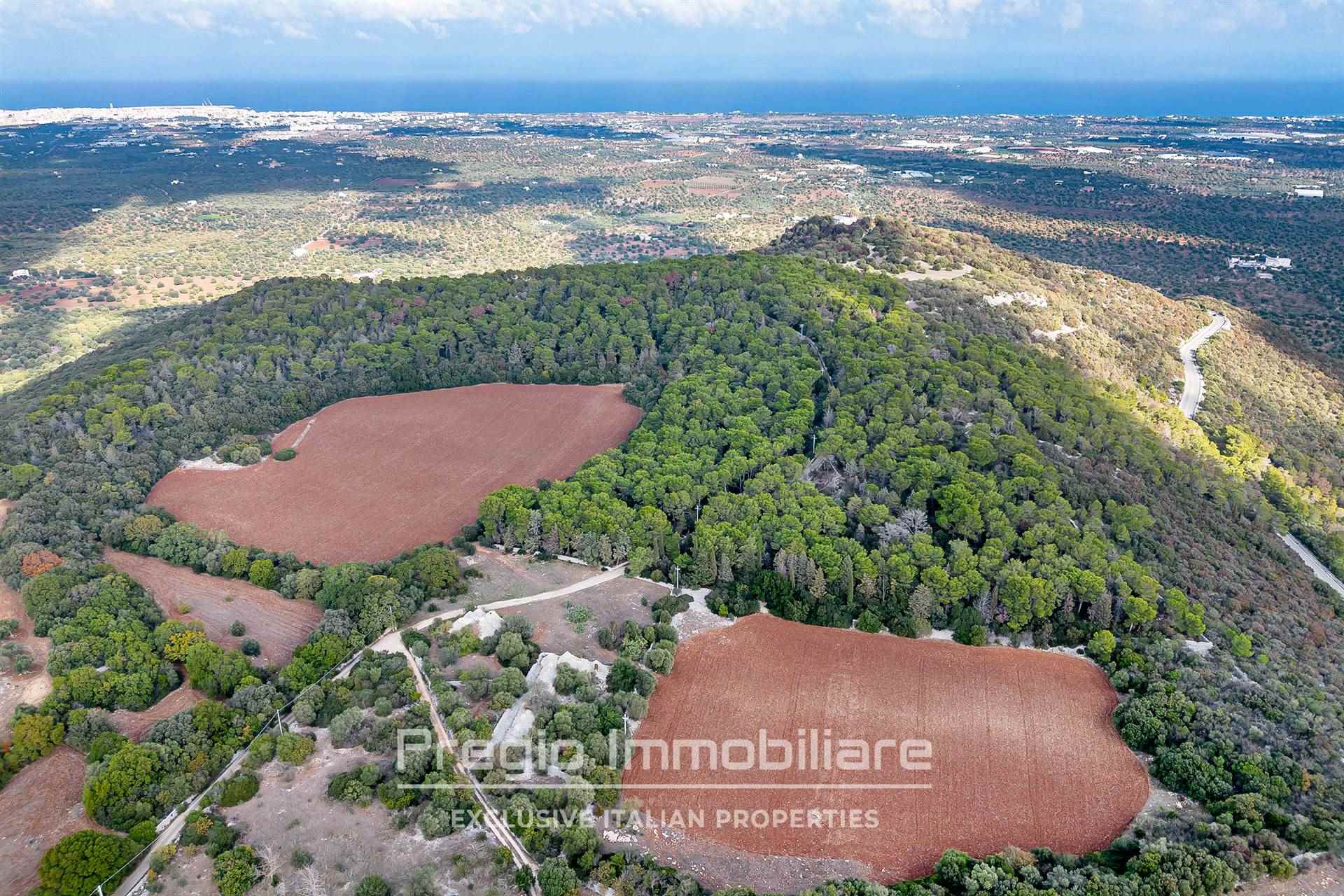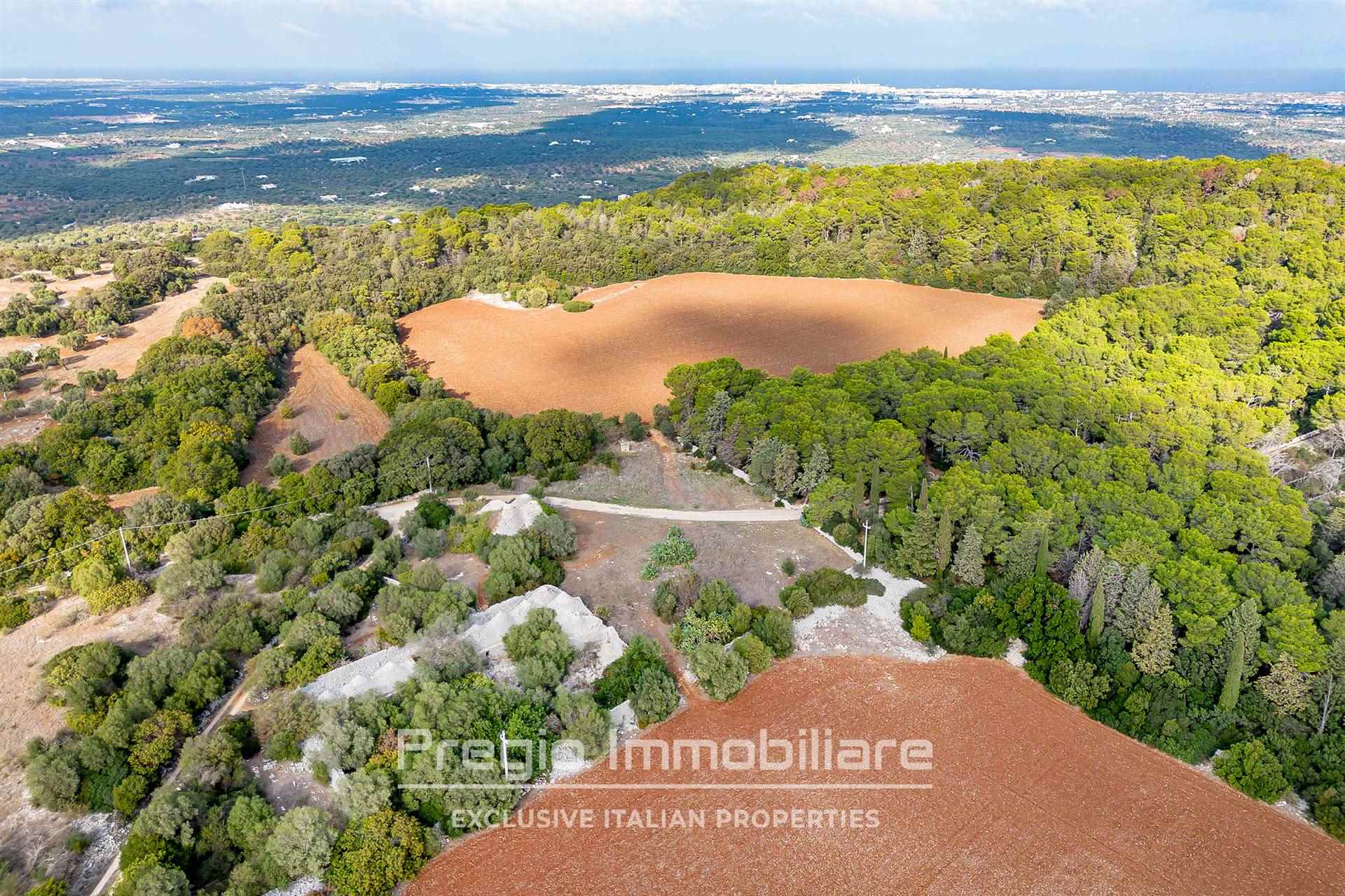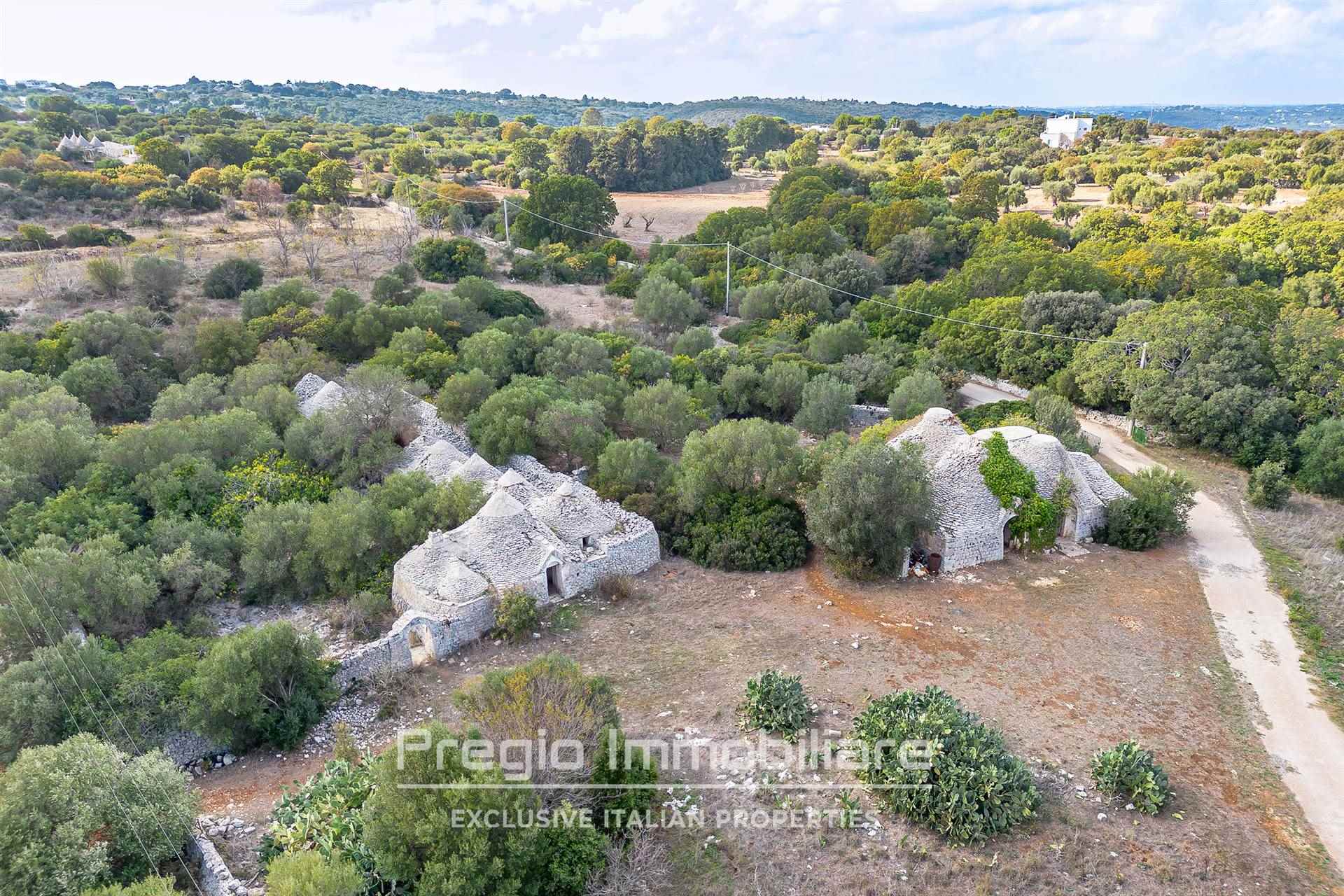 Il complesso si compone di 17 trulli autentici, che offrono l’opportunità di essere restaurati per valorizzare il loro prezioso patrimonio architettonico. Originariamente utilizzati come stalle, mangiatoie, frantoi e abitazioni, questi trulli rappresentano la base ideale per realizzare una dimora esclusiva che unisce tradizione e comfort moderni. La proprietà si estende su oltre 32 ettari, di cui 6 destinati a seminativo e 25 a bosco, una vera tenuta che garantisce privacy e tranquillità. I sentieri che attraversano il bosco sono ideali per passeggiate o momenti di relax immersi nella natura.