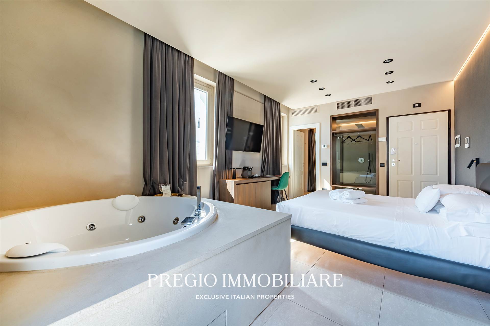 L’intero edificio è stato oggetto di un restauro meticoloso, che ha sapientemente coniugato il fascino storico dell’architettura originale con il comfort e la funzionalità degli ambienti contemporanei. L’immobile si sviluppa su più livelli e ospita quattro ampie suite, ciascuna dotata di bagno privato con vasca idromassaggio, balconi e un raffinato arredamento curato nei minimi dettagli. Riscaldamento e raffrescamento sono attraverso pompa di calore idronica e canalizzata, per un comfort ottimale in ogni stagione.