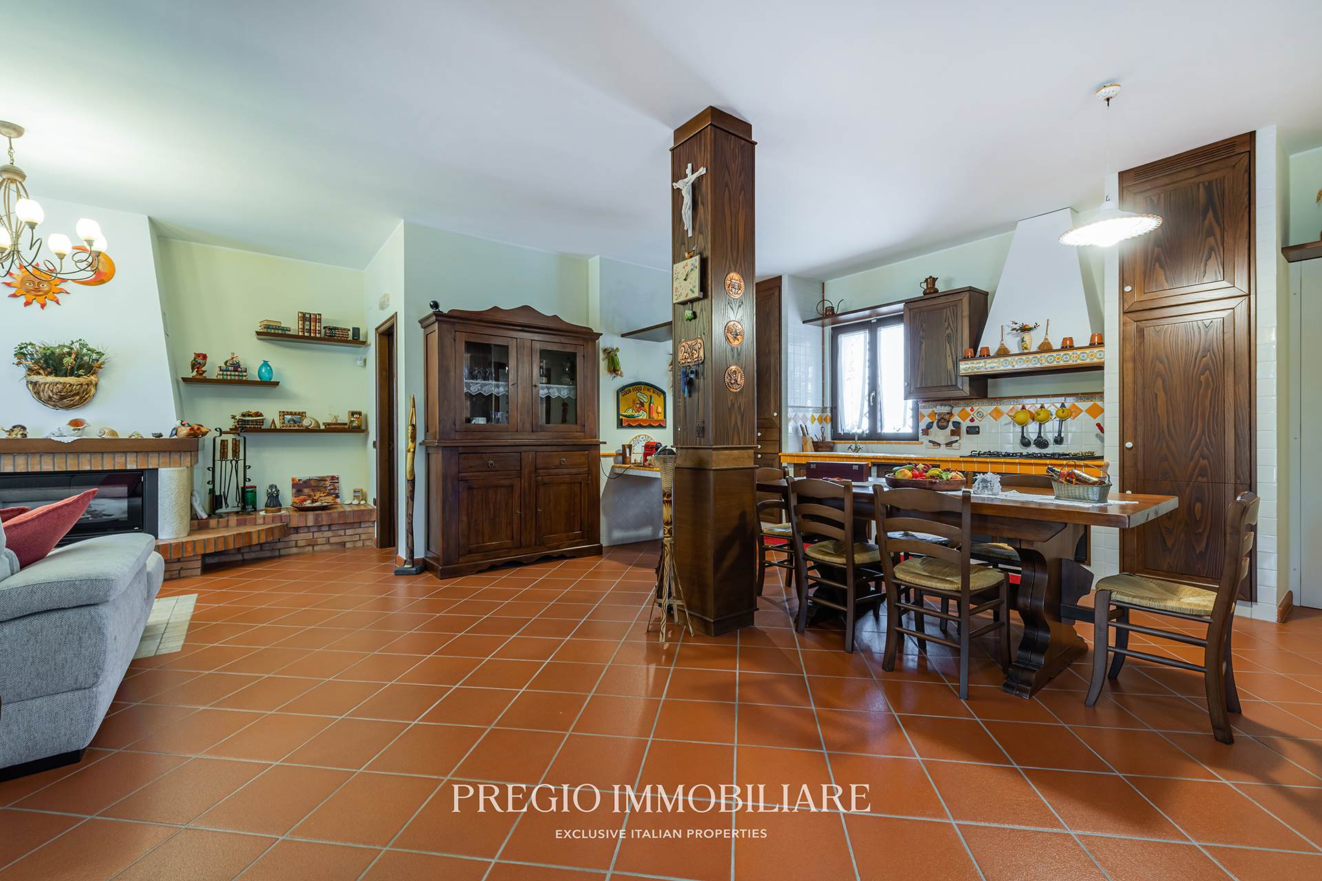 All’esterno, la piscina interrata con area relax in muratura crea un ambiente perfetto per godere appieno degli spazi esterni, mentre il giardino è servito da impianto di irrigazione automatizzato.