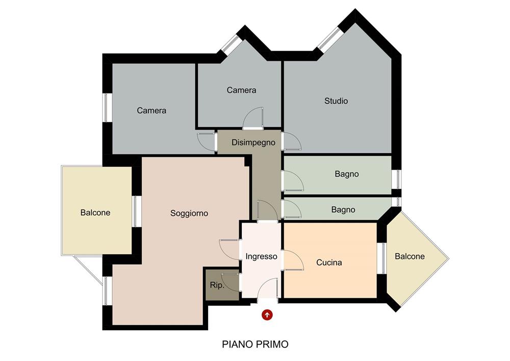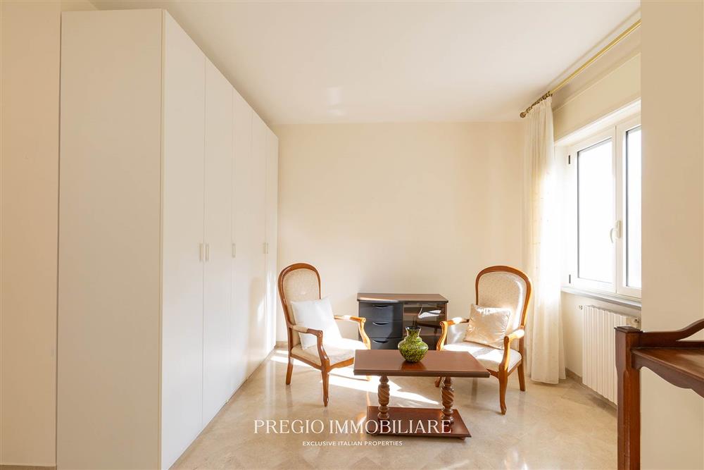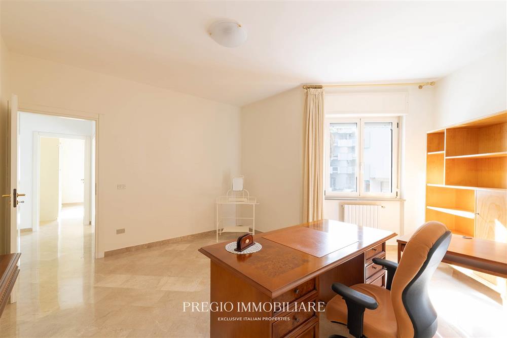 L’immobile è al primo piano di un piccolo contesto condominiale, affacciato su una via tranquilla e riservata. Gli spazi interni sono ben distribuiti e si compongono di soggiorno, comoda cucina abitabile, due ampie camere matrimoniali (di cui una attualmente adibita a studio), una camera singola, due bagni e ripostiglio. Completano la proprietà due balconi: uno a servizio del soggiorno e uno in cucina, semi-verandato.