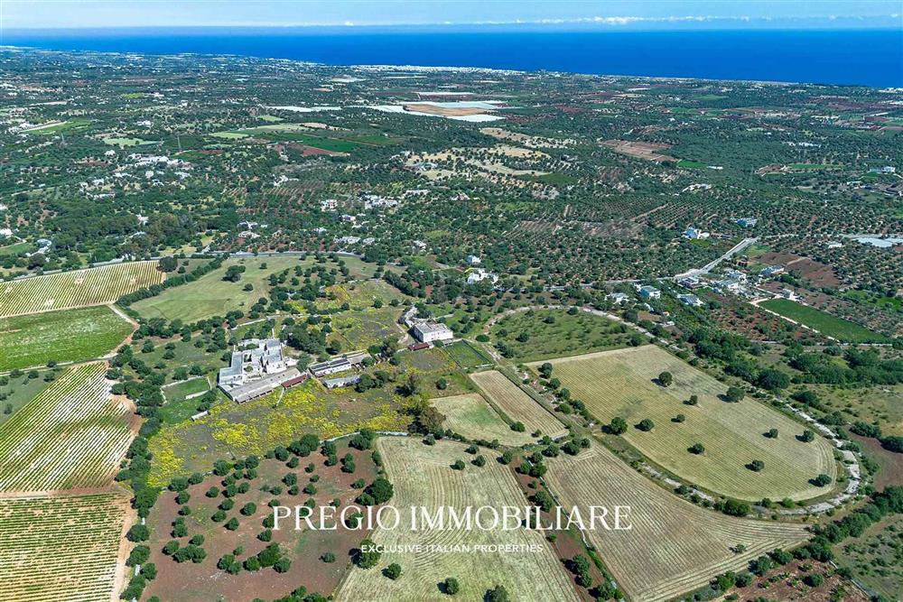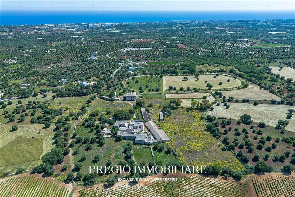 Il complesso si estende su una superficie di 60 ettari, che includono un vigneto di uva da vino di circa 12 ettari, uliveti secolari, mandorleti e una chiesetta storica. Attualmente, è già stato presentato un progetto per valorizzare la masseria trasformandola in una struttura ricettivo-alberghiera di alta classe, capace di integrare il pregio architettonico con le esigenze del turismo di lusso.