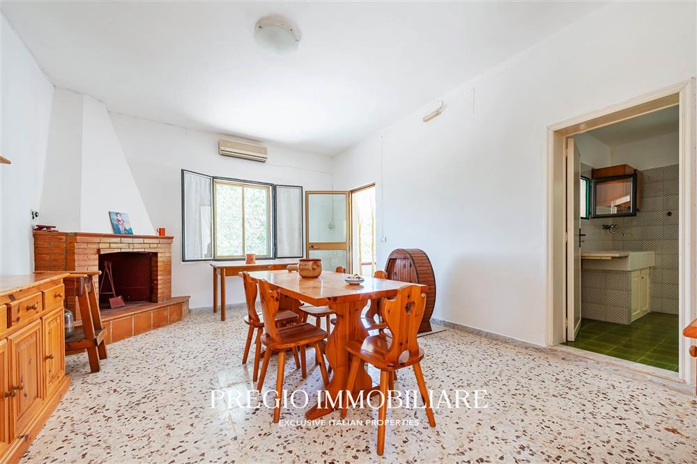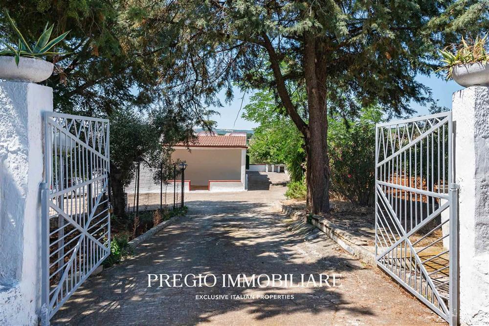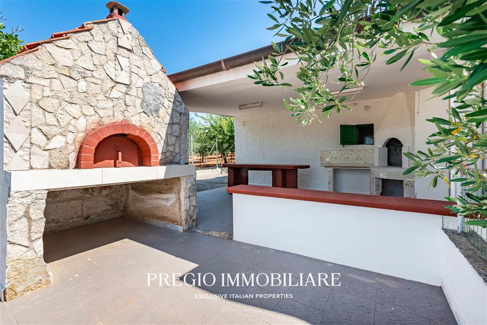 In una zona riservata e strategicamente collegata alle principali direttrici viarie, Pregio Immobiliare propone in esclusiva una villa indipendente di circa 110 mq con giardino privato e un terreno di proprietà (ca 3500 mq), coltivato a alberi da frutta e uliveto con alberi secolari.