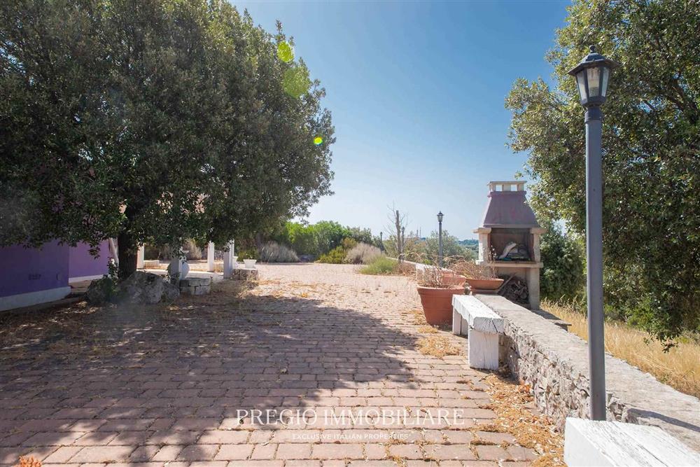 All’esterno, un ampio piazzale in pietra circonda la villa, offrendo spazio ideale per la vita all’aperto, cene conviviali o semplicemente per godere della tranquillità e della vista aperta sul paesaggio rurale. Il contesto è riservato, ma non isolato, con accesso agevole e collegamenti rapidi verso il centro di Monopoli e le località turistiche più rinomate della zona.
