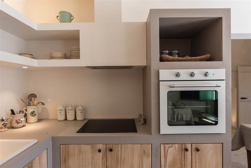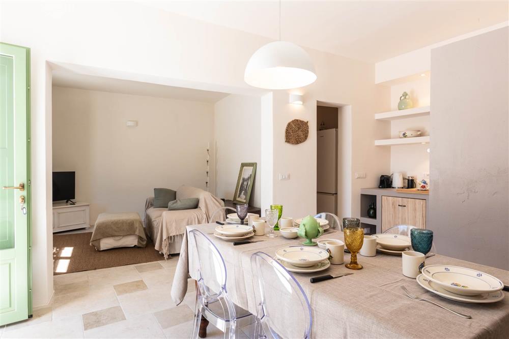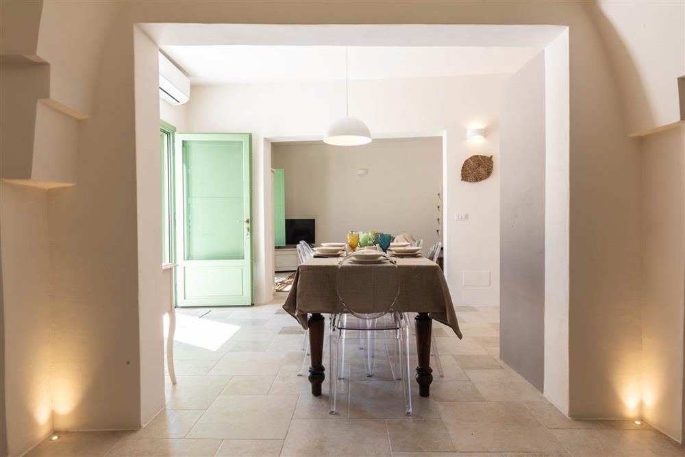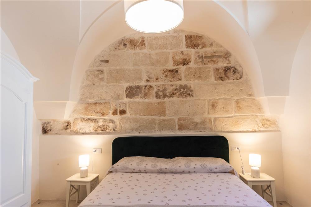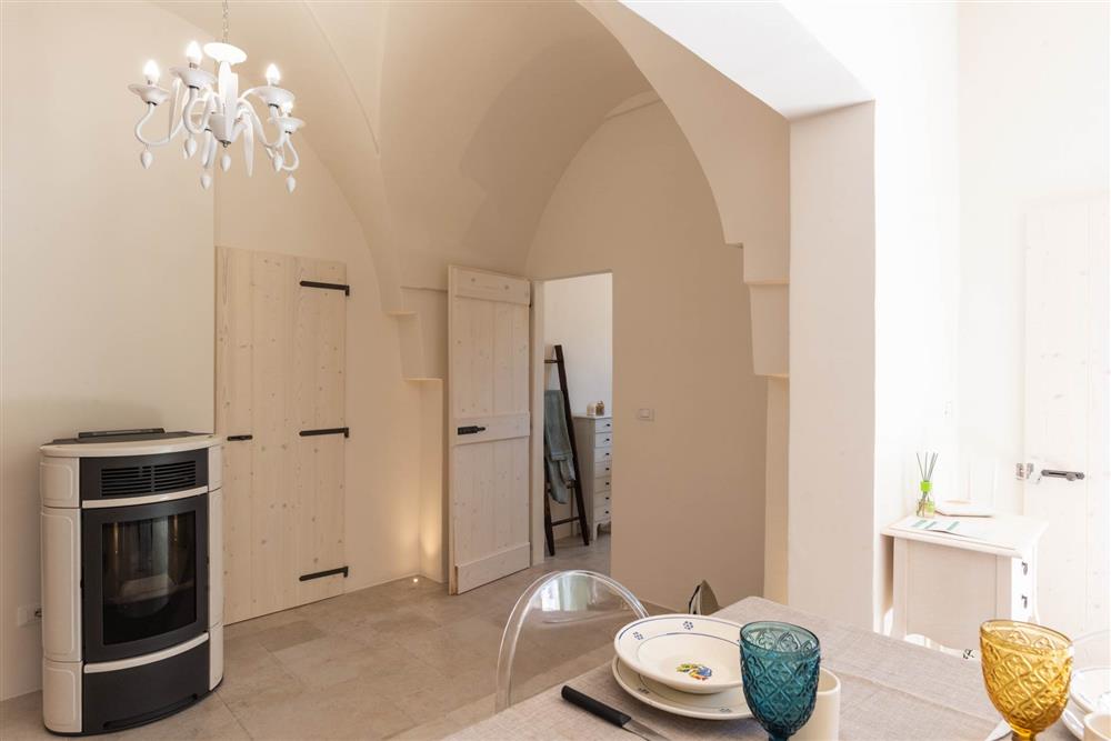 L’abitazione è stata oggetto di una ristrutturazione integrale che ha interessato la distribuzione degli spazi interni e tutti gli impianti. L’intervento ha mantenuto e valorizzato gli elementi architettonici originari, tra cui le tipiche volte a stella, creando ambienti accoglienti e coerenti con la tradizione costruttiva locale.