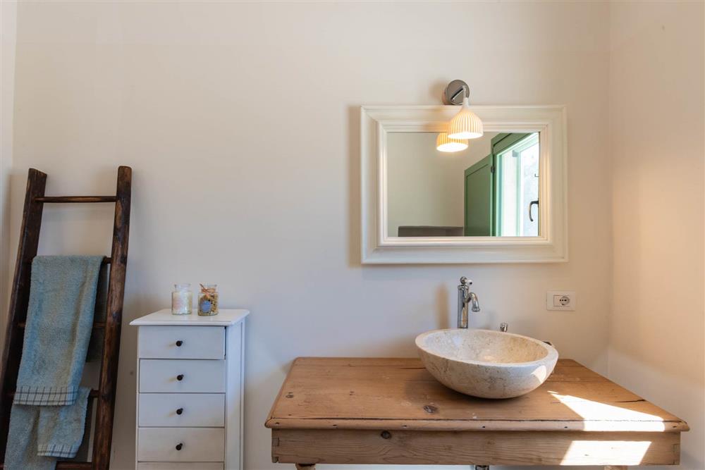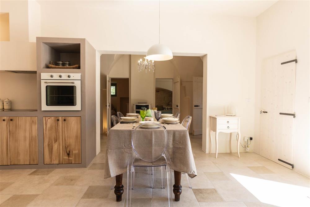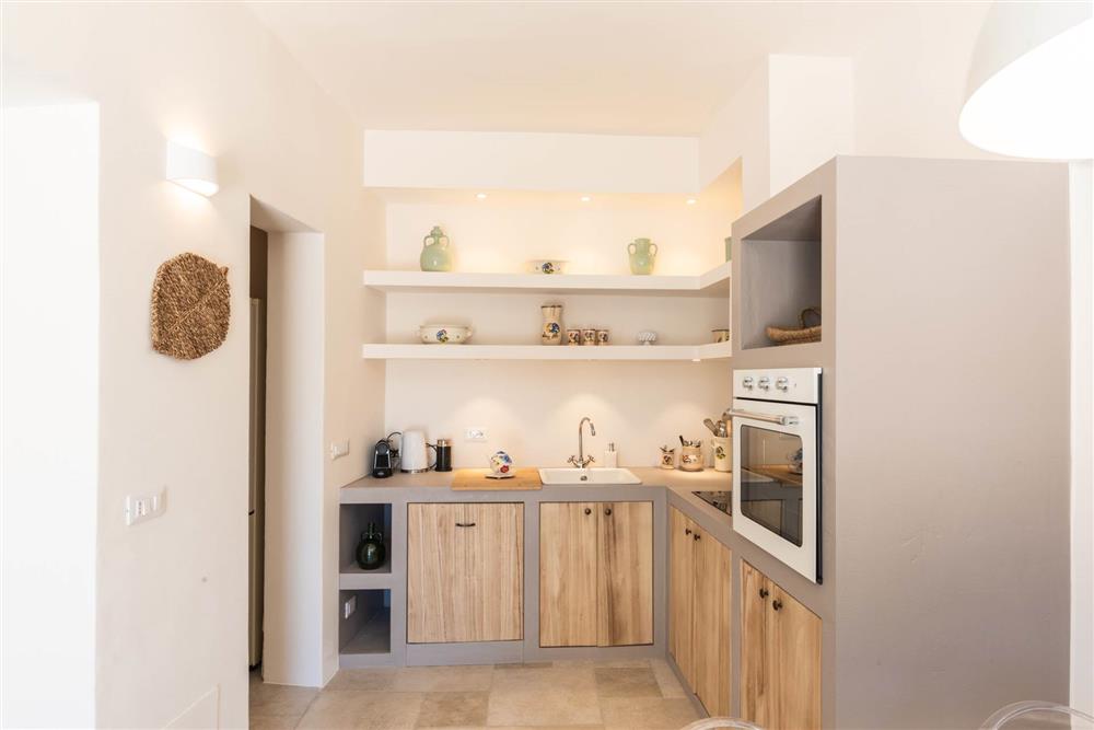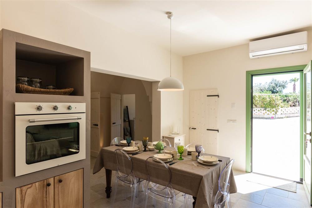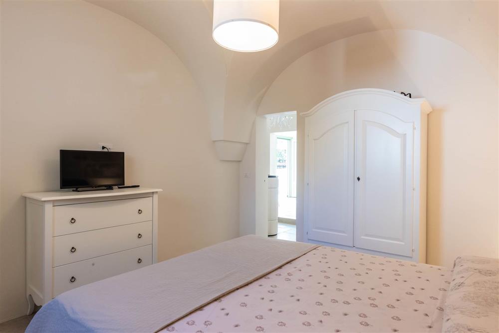 L’abitazione è stata oggetto di una ristrutturazione integrale che ha interessato la distribuzione degli spazi interni e tutti gli impianti. L’intervento ha mantenuto e valorizzato gli elementi architettonici originari, tra cui le tipiche volte a stella, creando ambienti accoglienti e coerenti con la tradizione costruttiva locale.