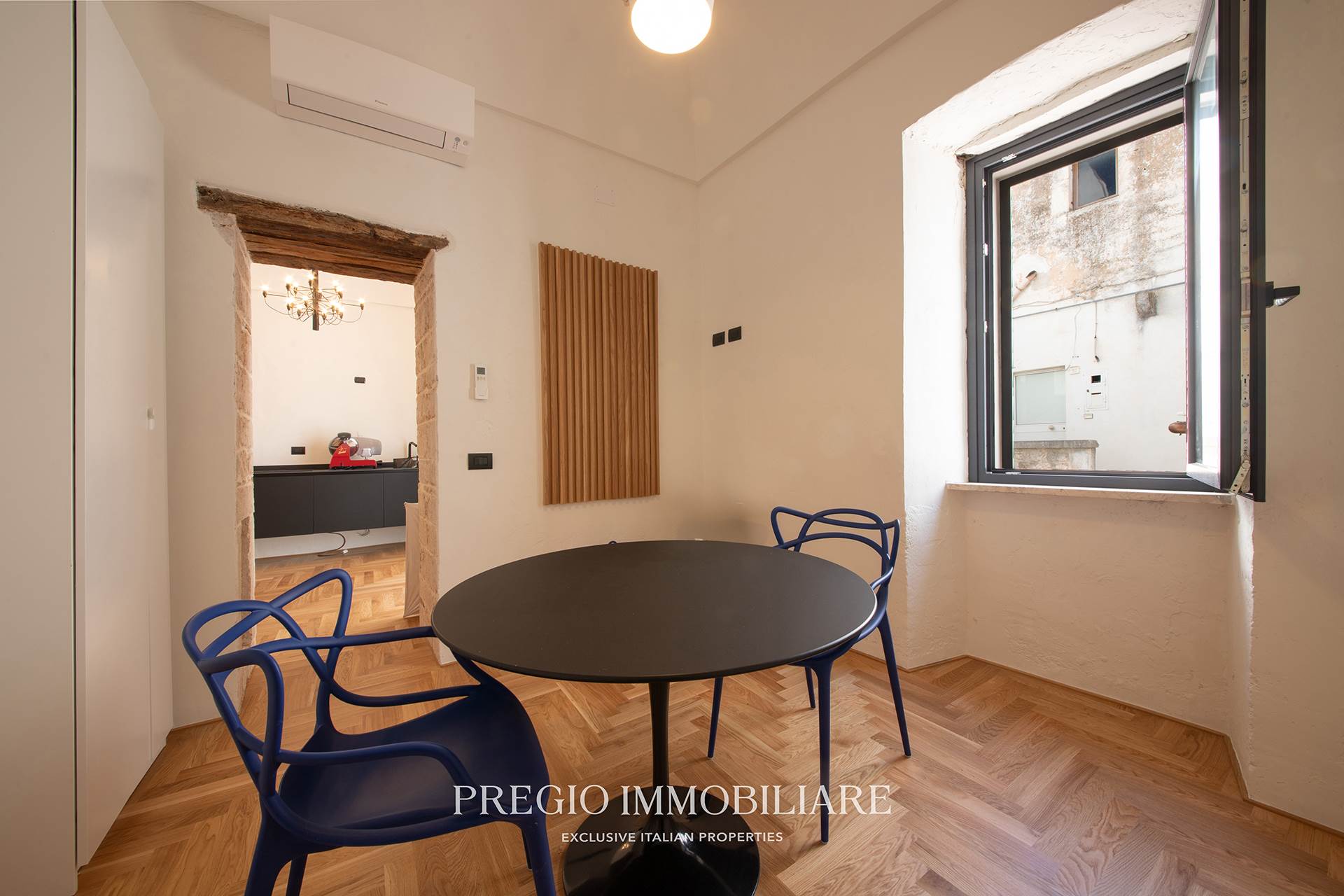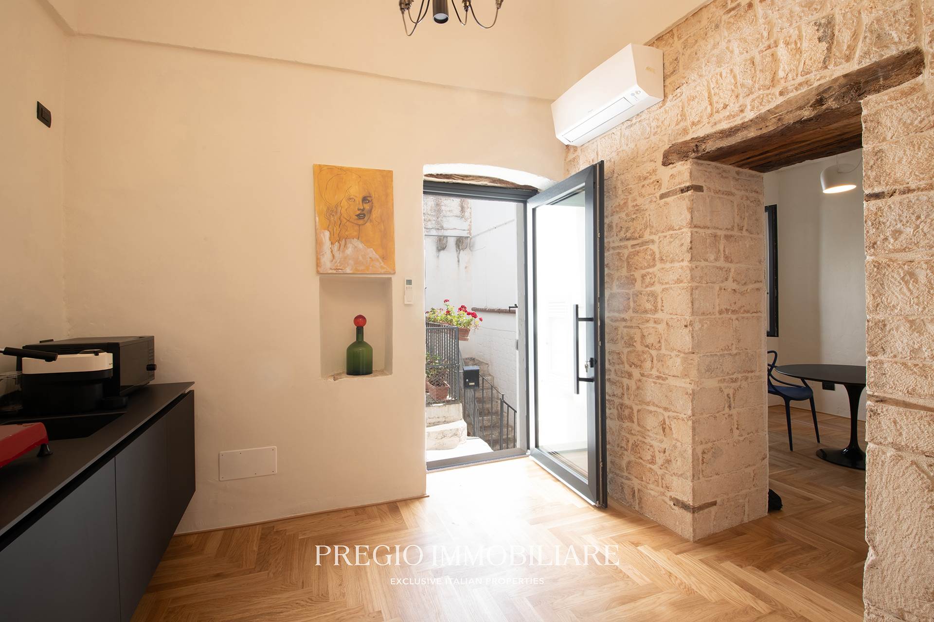 In una delle vie più centrali e servite di Noci, Pregio Immobiliare propone in vendita un appartamento indipendente di 110 mq, completamente ristrutturato con materiali di alta qualità e soluzioni architettoniche d’autore.