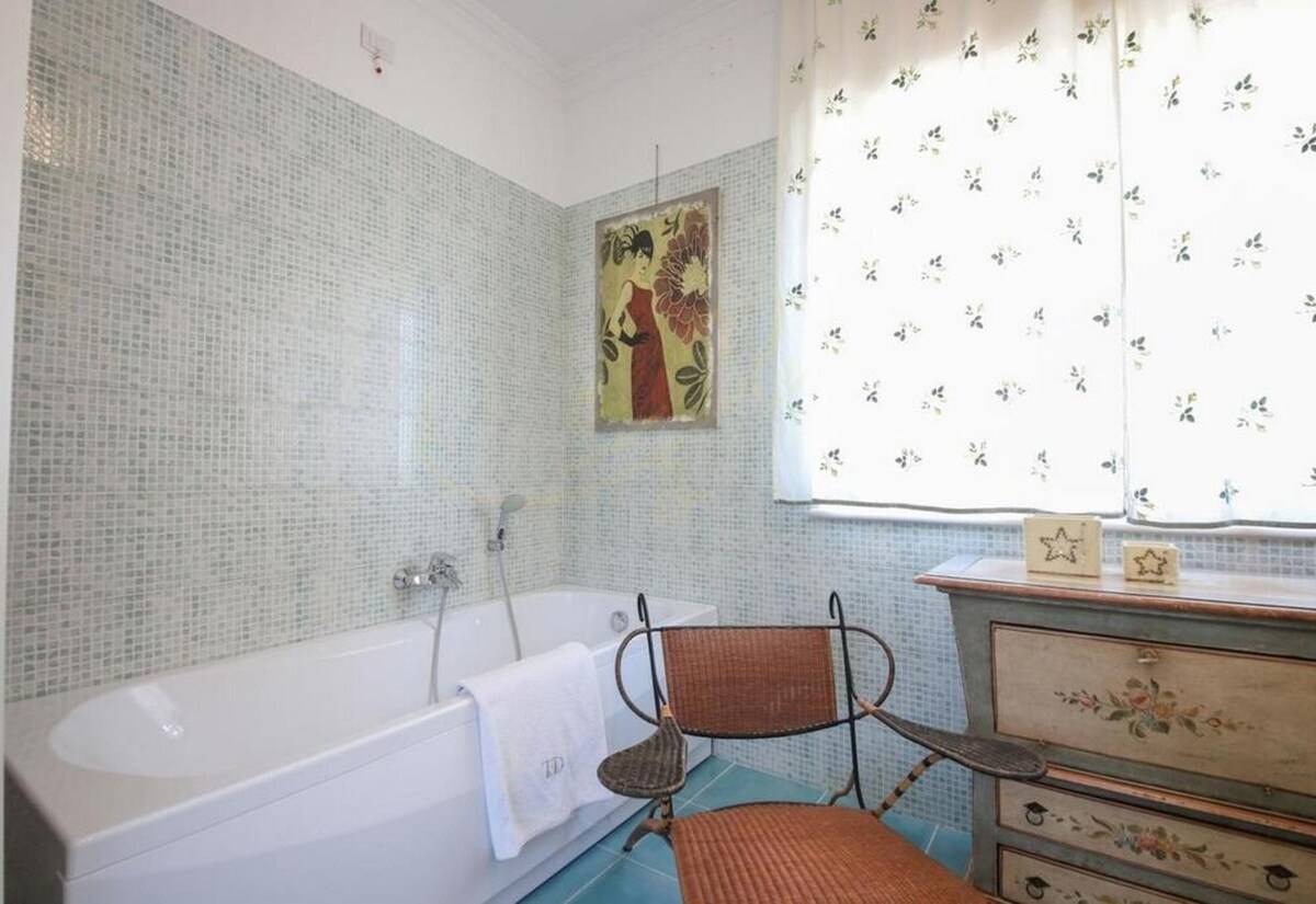 Gli spazi esterni sono altrettanto lussuosi e si compongono di un giardino curato, tre diversi porticati, perfetti per cene e pranzi all’aperto, e una stupenda piscina di sale riscaldata, di 70 mq e attrezzata di docce e area relax.