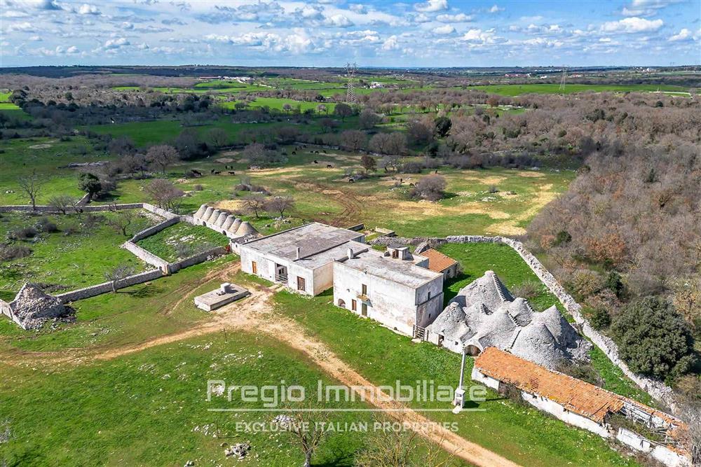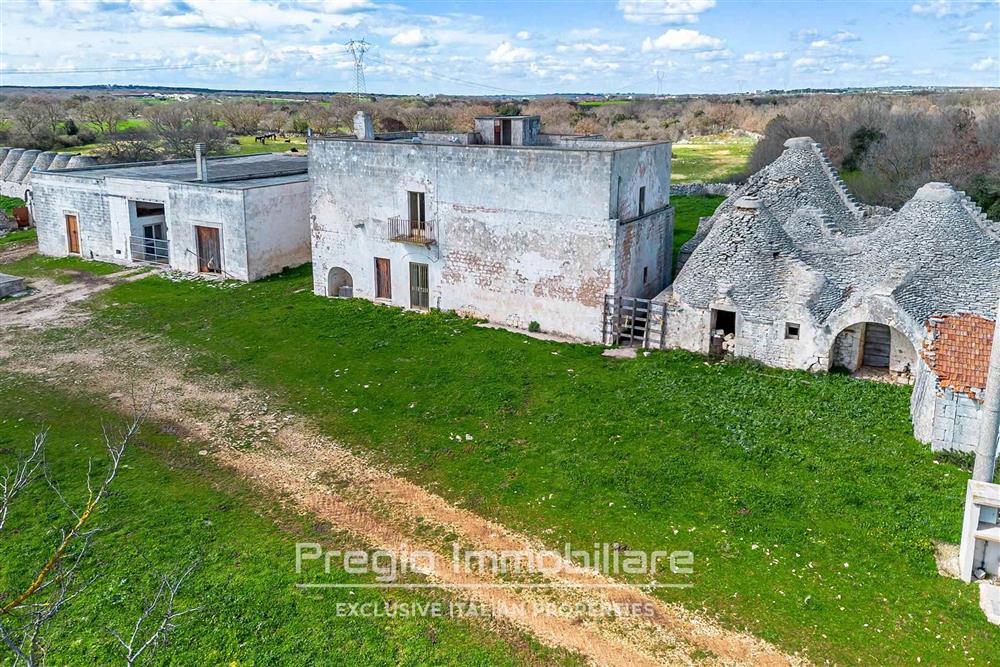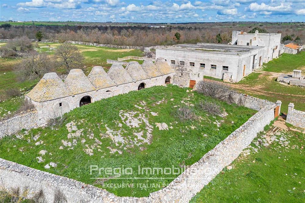 Accanto al fabbricato principale, si trovano un secondo edificio a piano singolo, originariamente destinato a magazzino, e circa 20 coni a trullo, che un tempo servivano come legnaie, stalle, depositi e mangiatoie.