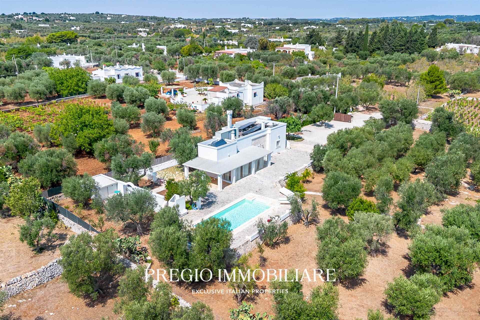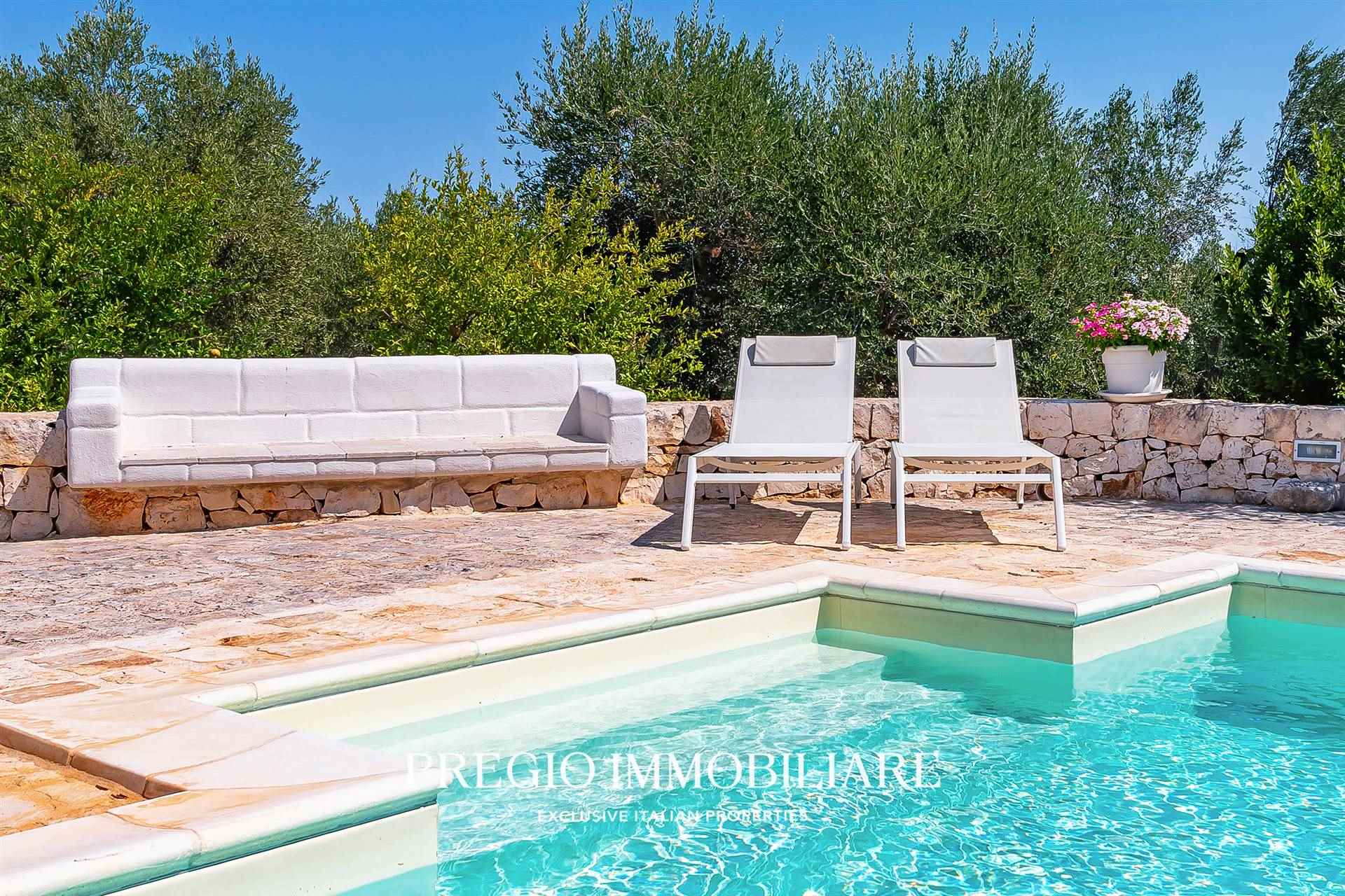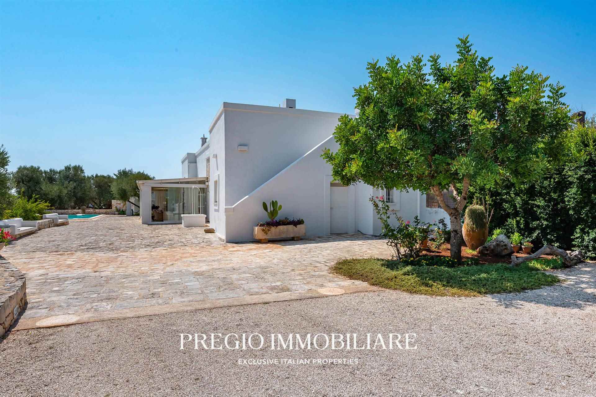 A pochi minuti dal centro di Ostuni, Pregio Immobiliare propone in vendita una villa mediterranea con piscina privata, recentemente ristrutturata con materiali di pregio e dotata di comfort di livello superiore.