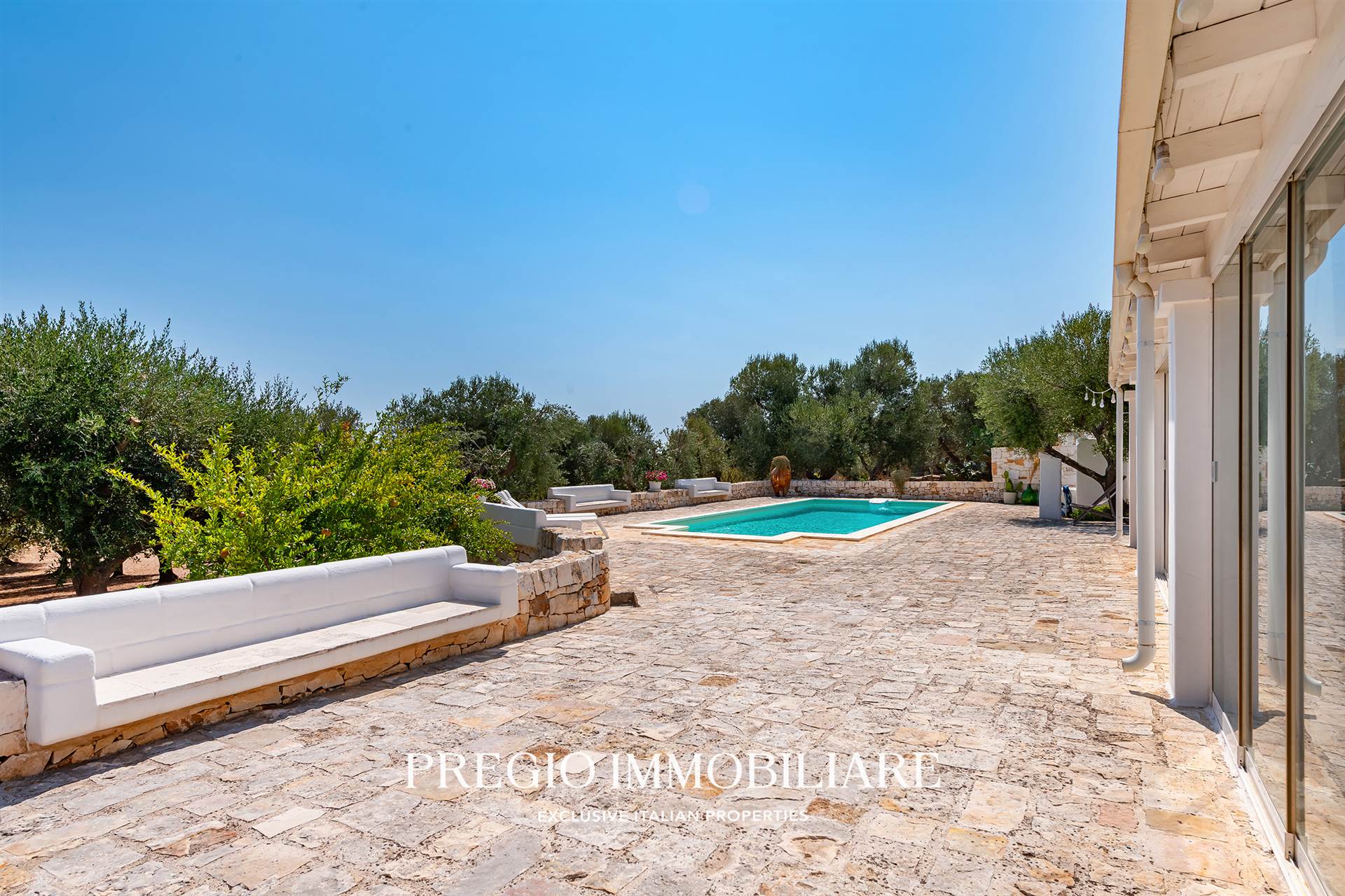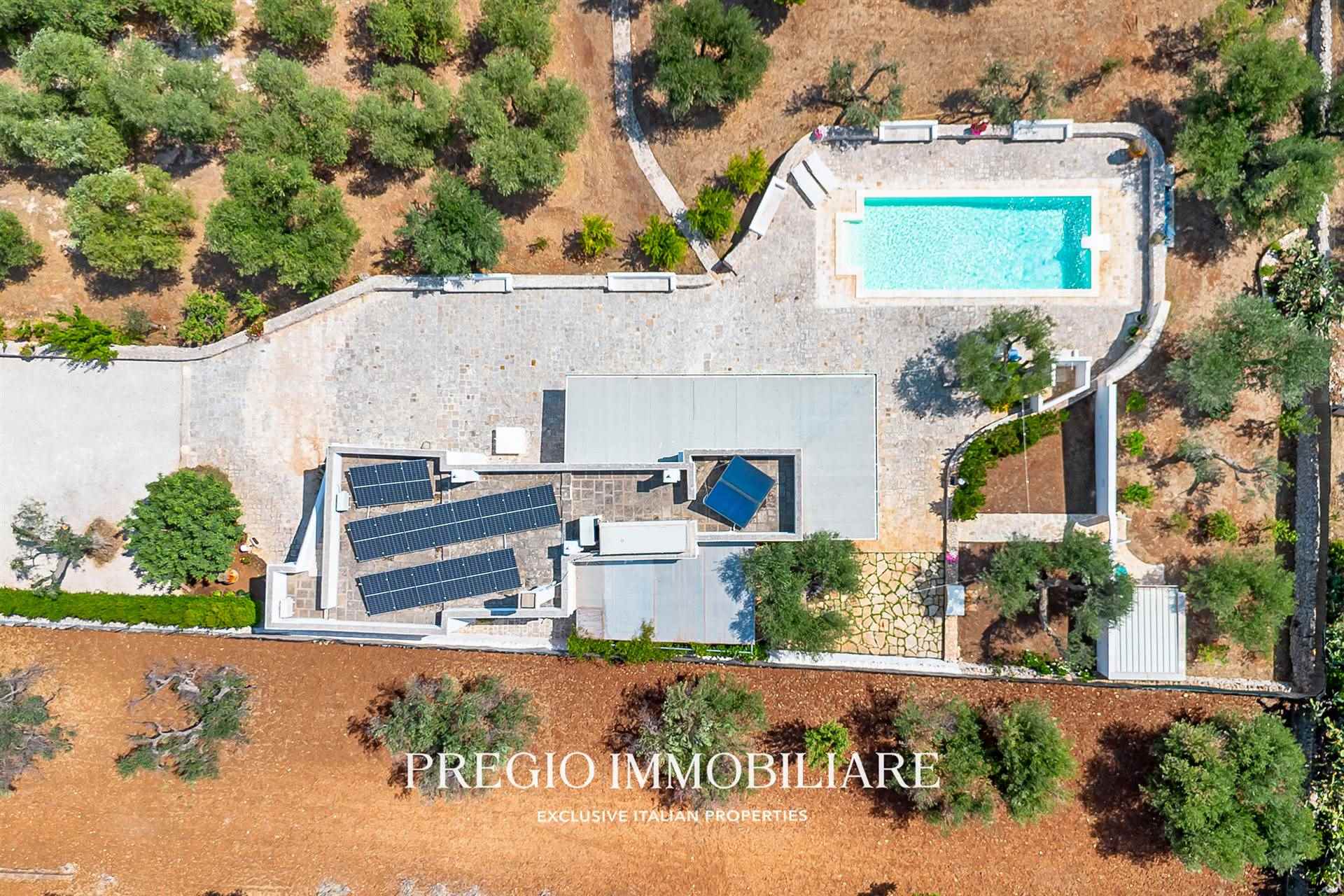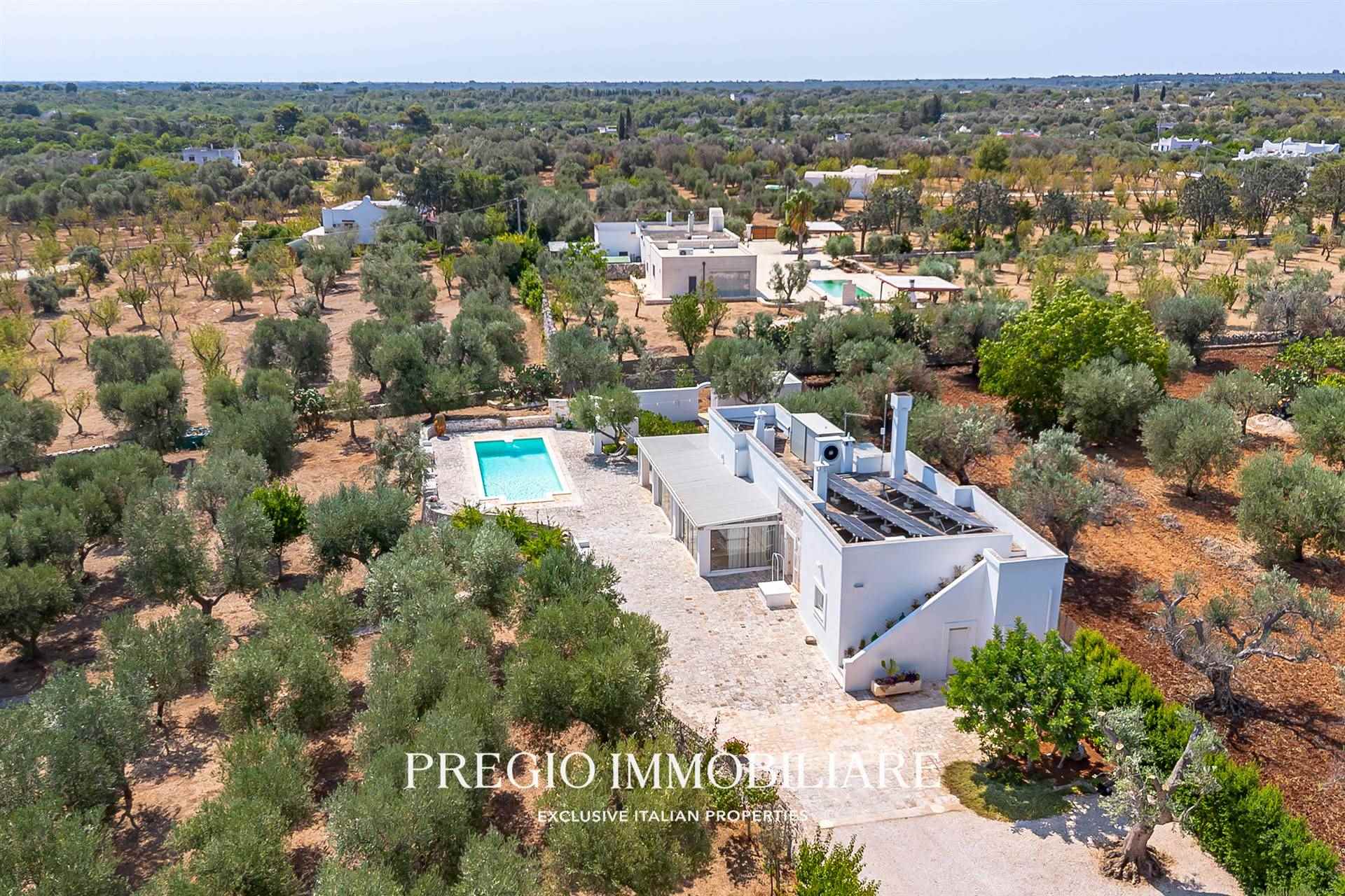 A pochi minuti dal centro di Ostuni, Pregio Immobiliare propone in vendita una villa mediterranea con piscina privata, recentemente ristrutturata con materiali di pregio e dotata di comfort di livello superiore.