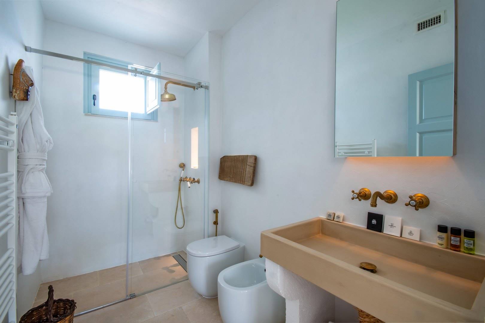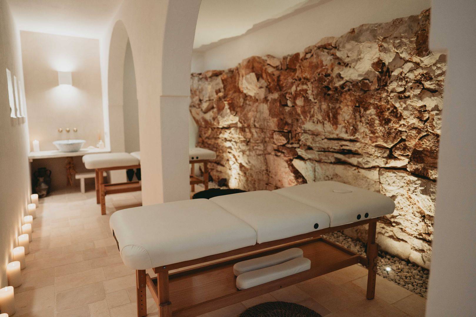All’esterno, un giardino paesaggistico di chiara bellezza — con ulivi secolari, vigneti e alberi da frutto — avvolge gli edifici in un’atmosfera autentica e rilassante. Due piscine scenografiche, una spa incastonata nella roccia, una cucina esterna con forno a legna, spogliatoi di design e zone relax immerse nel verde definiscono un contesto pensato per vivere, accogliere o investire.