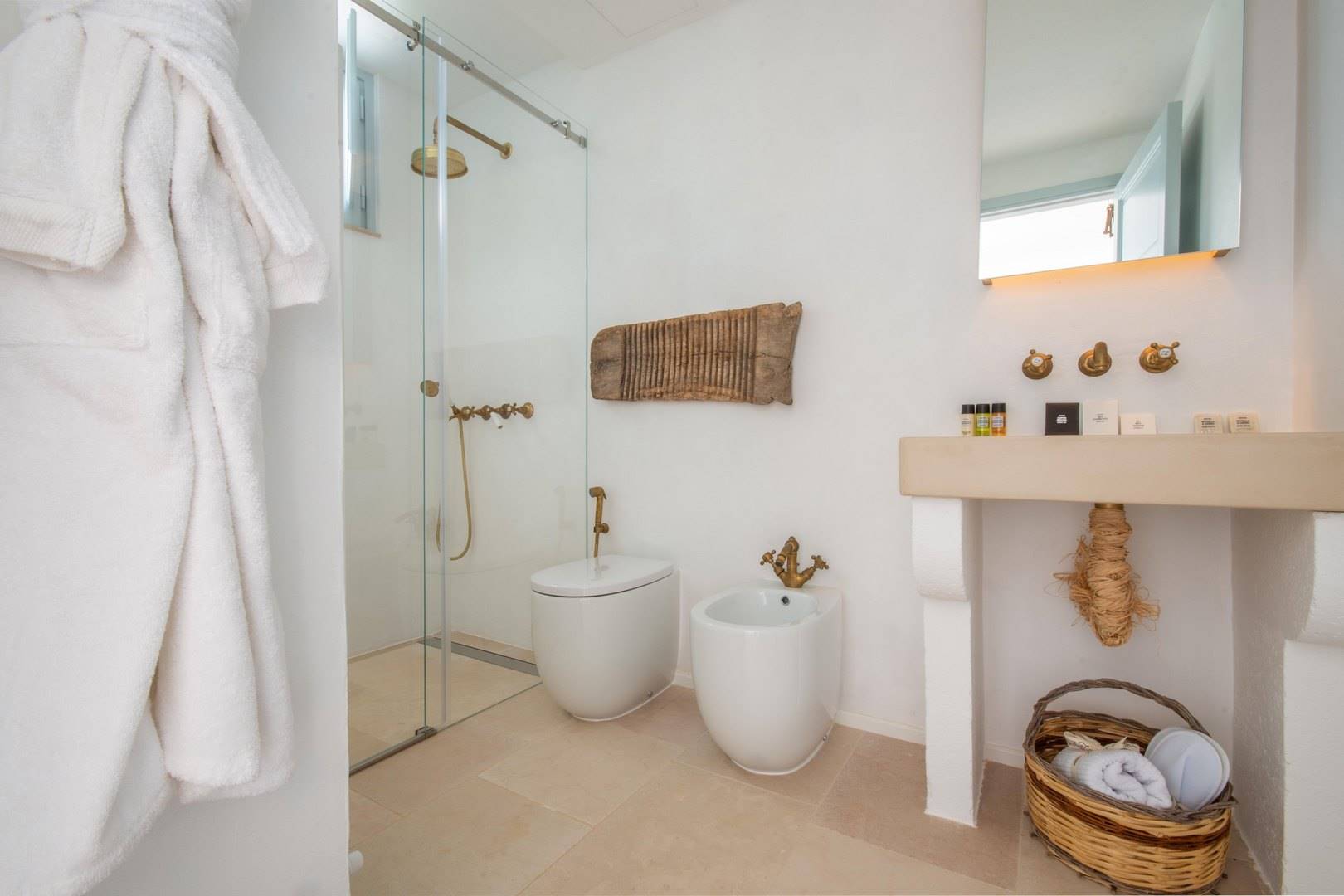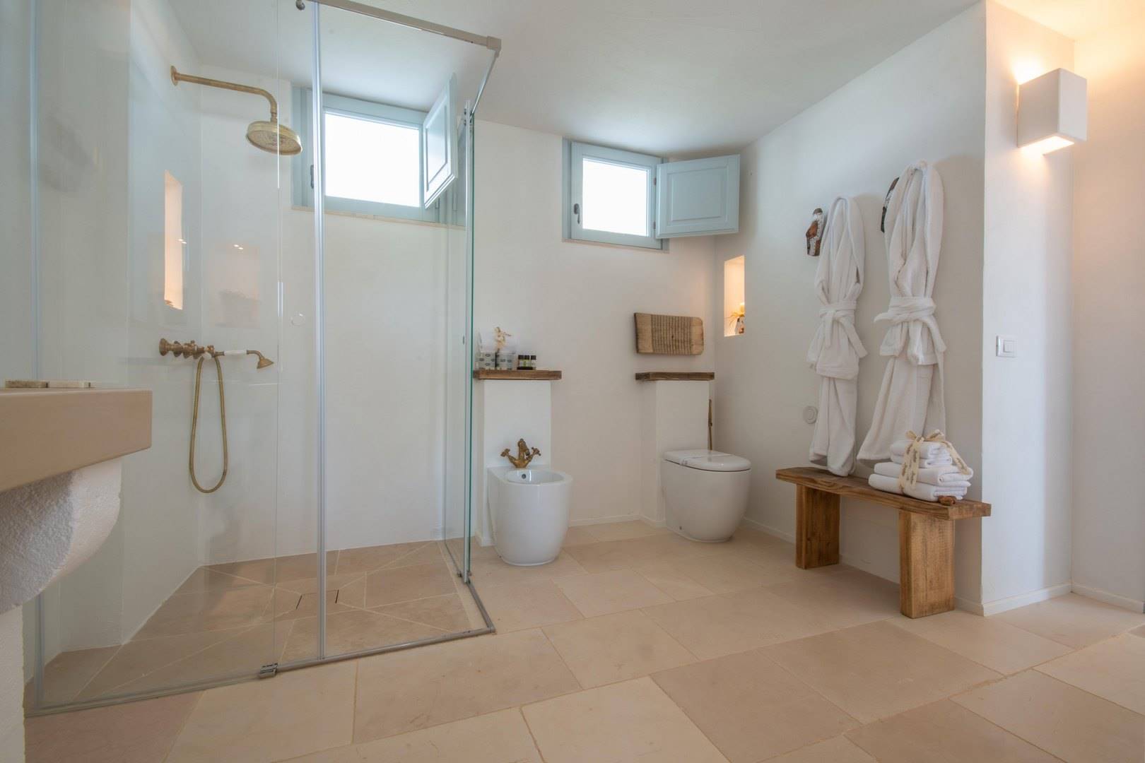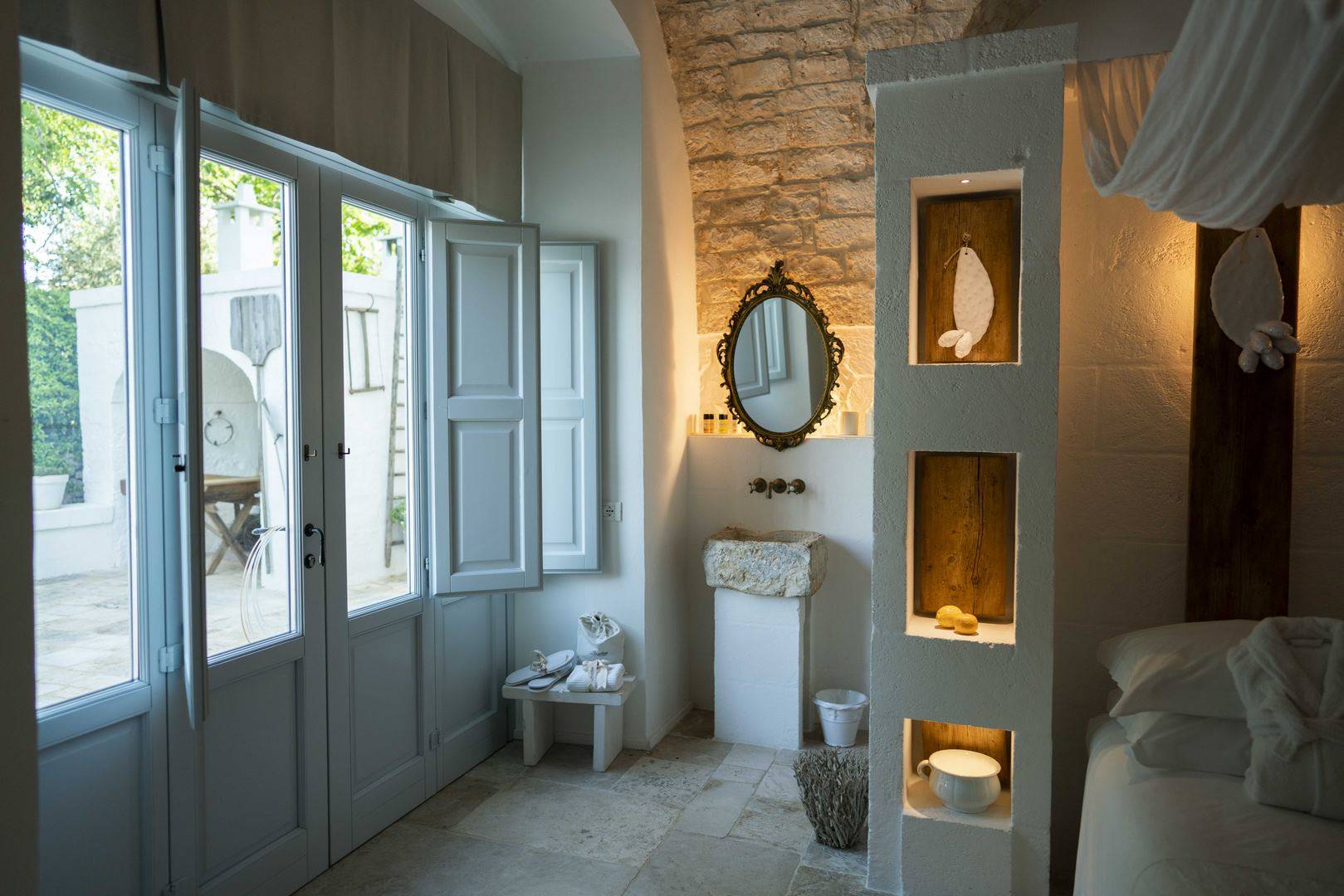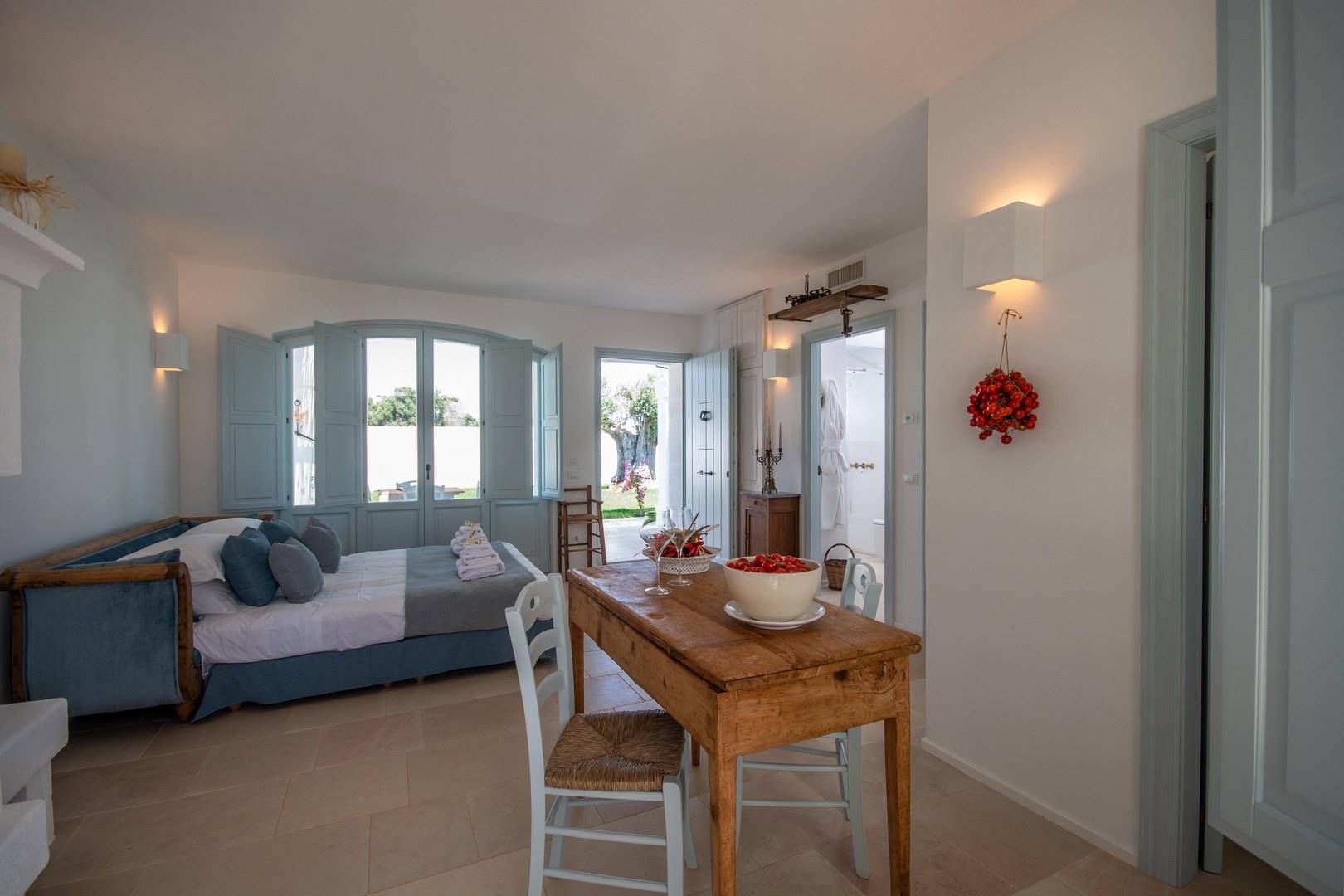 Un’antica masseria nobiliare, articolata in cinque edifici distinti, accoglie oggi ambienti ampi, luminosi e versatili: numerose camere e suite, zone giorno raffinate, cucine private, locali tecnici e spazi trasformabili in nuove unità abitative o dependance. Il layout attuale garantisce privacy assoluta e grande capacità ricettiva, con la possibilità di riconfigurare gli spazi secondo esigenze personali o progettuali.