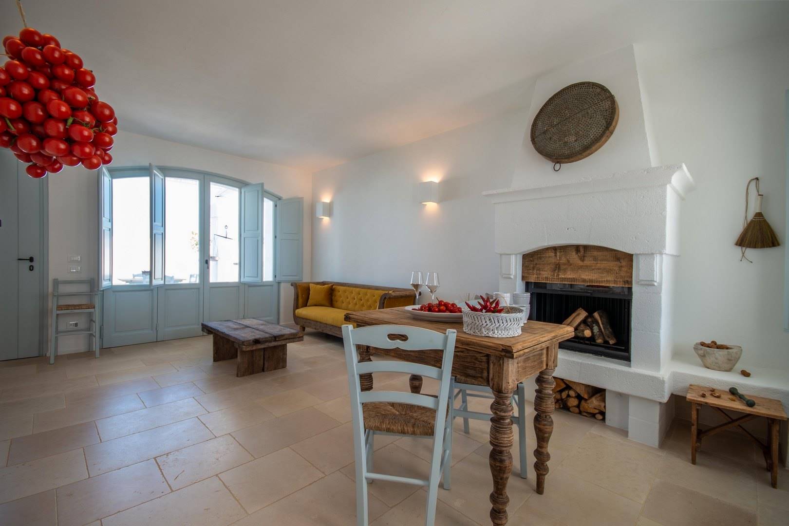 Ogni ambiente riflette una cura artigianale e una coerenza stilistica che esaltano l’identità storica del luogo, con dettagli autentici come camini in pietra, nicchie, volte in tufo e pavimentazioni tradizionali perfettamente conservate o ripristinate. La tecnologia più avanzata si integra con discrezione, grazie a impianti domotici, videosorveglianza, sistema di allarme e riscaldamento a pavimento, per un comfort moderno in totale sicurezza.