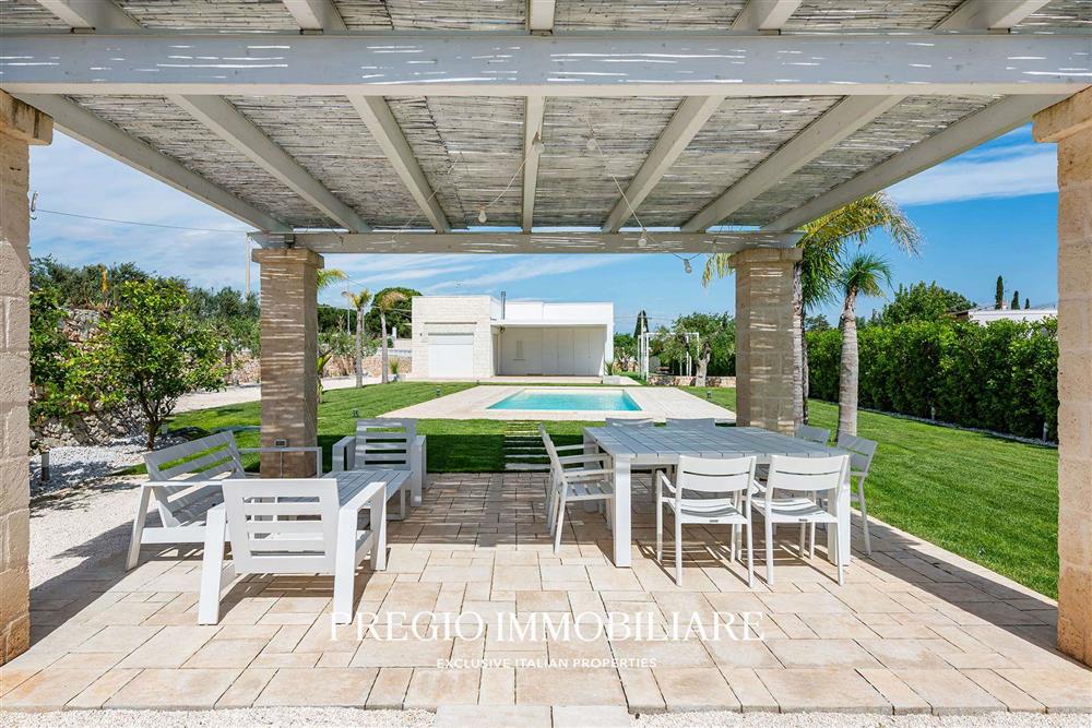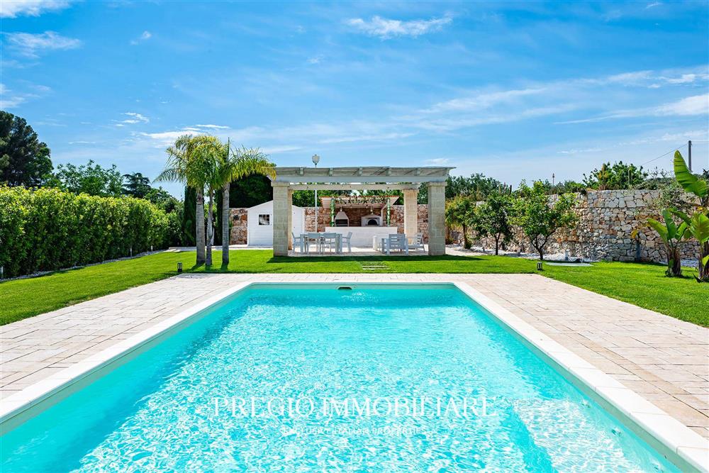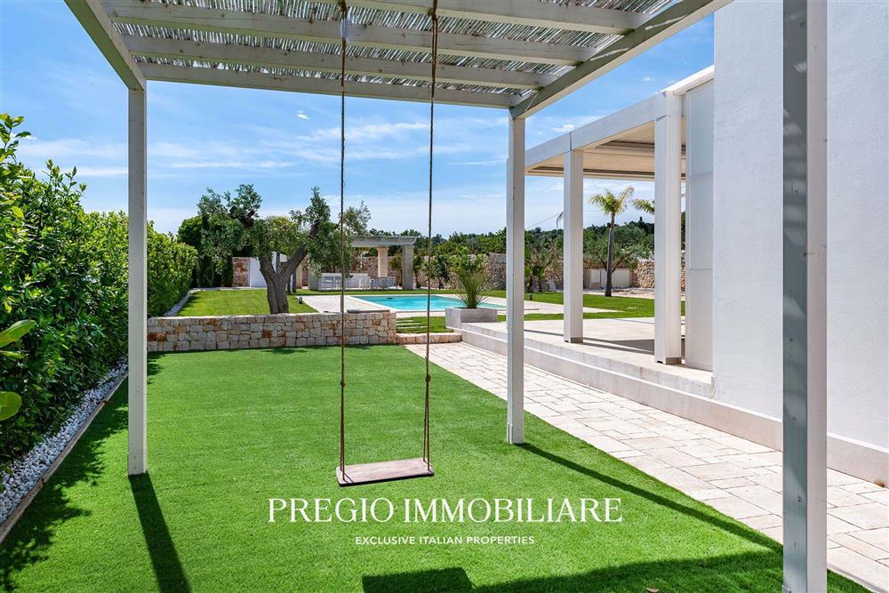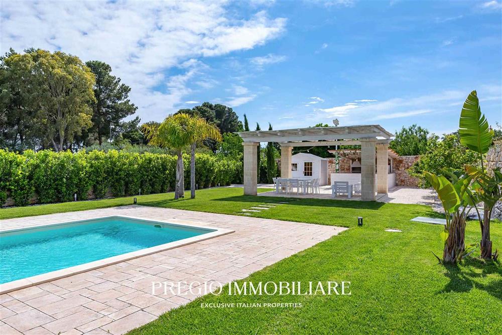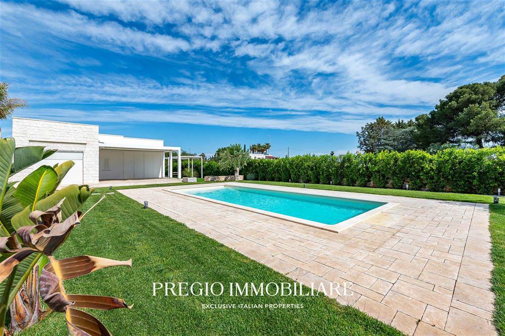 Uno degli elementi distintivi della villa è la splendida piscina, perfettamente inserita nel contesto del giardino. La piscina, illuminata per poter essere utilizzata anche di sera, rappresenta il luogo ideale per rilassarsi e godere delle lunghe giornate estive, magari sorseggiando un drink al tramonto.