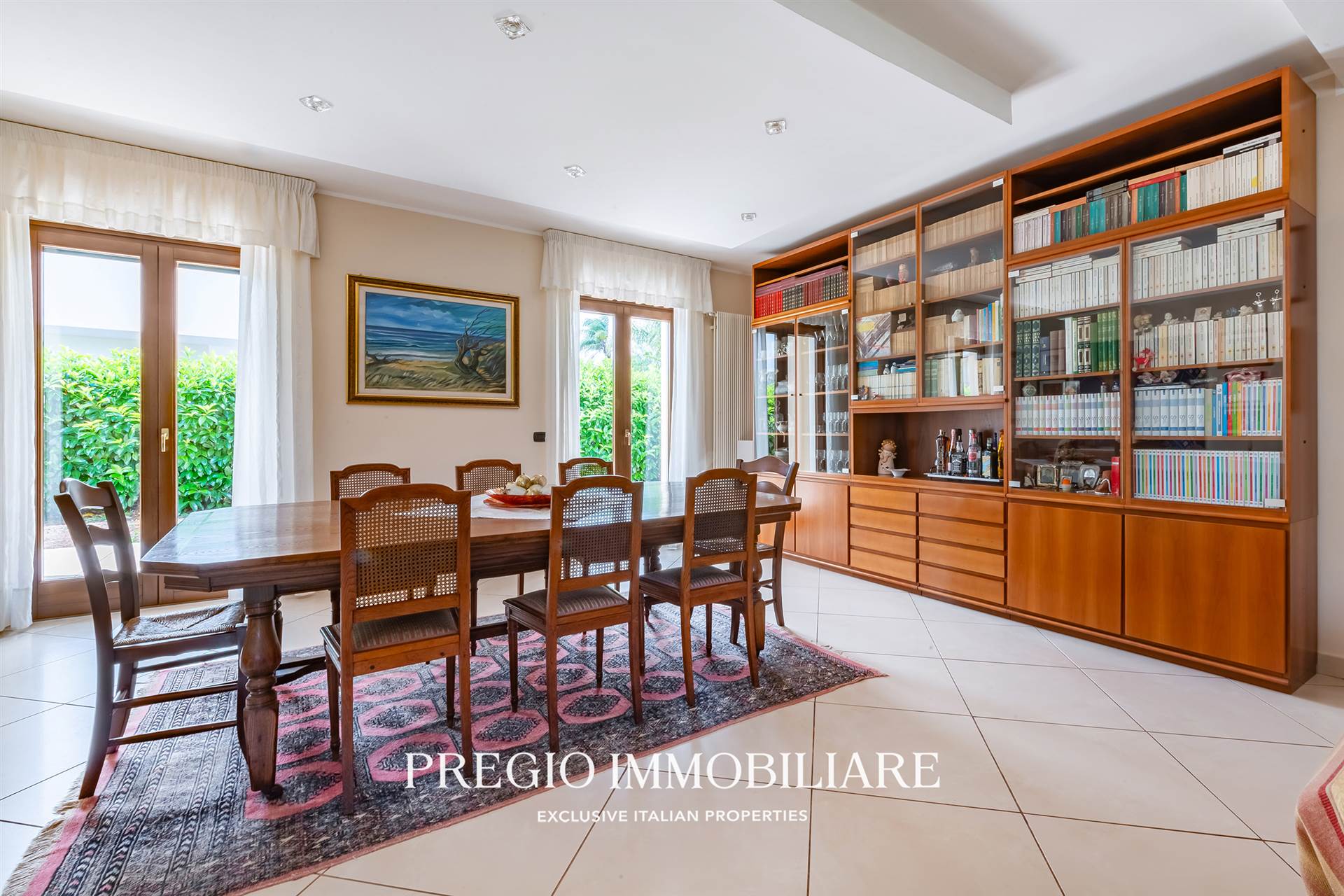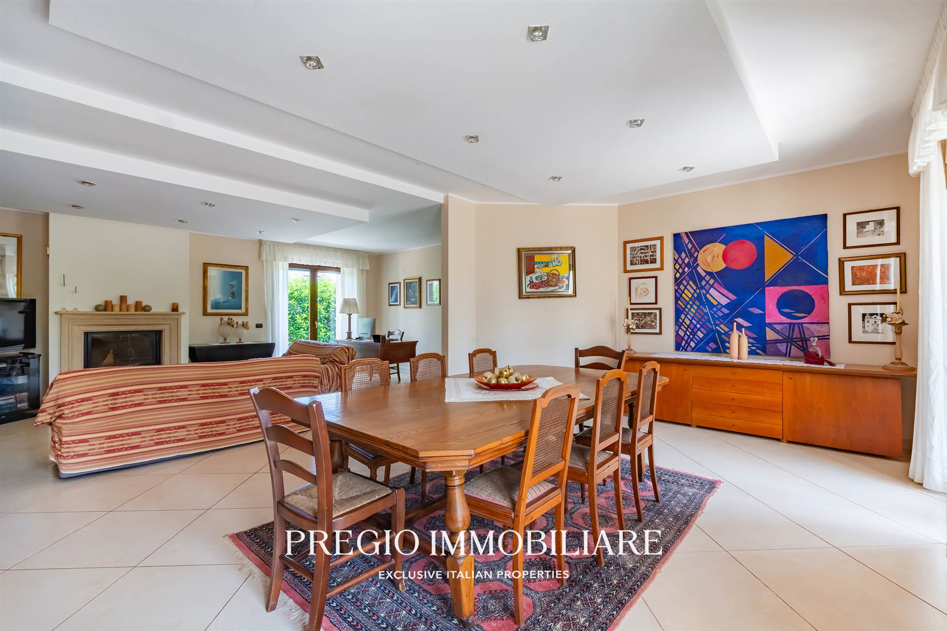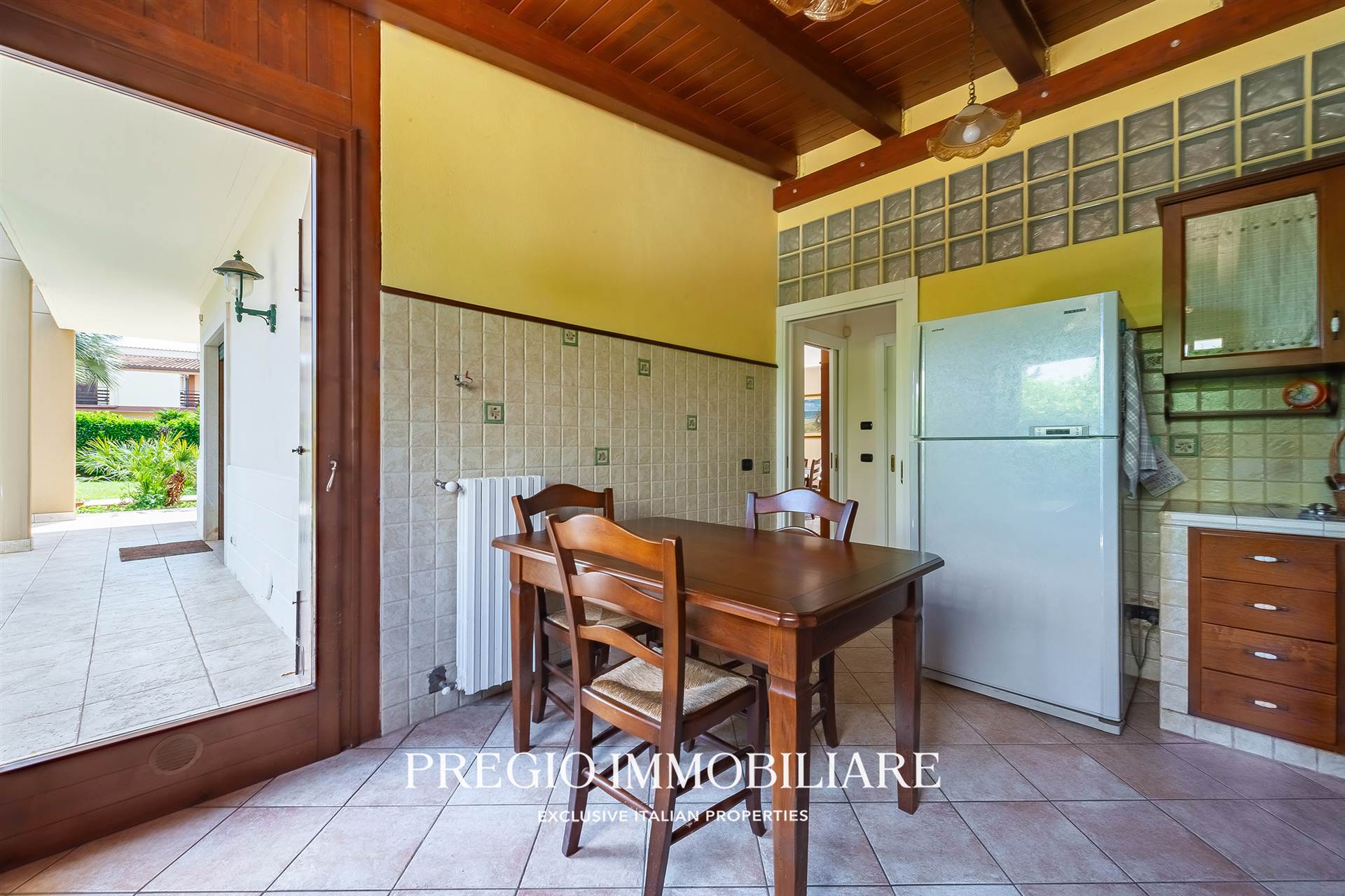 L’ingresso introduce in un salone di rappresentanza di 70 mq: ampio, luminoso, con affacci sul verde e spazi perfetti per vivere e ricevere. Adiacente, una cucina in muratura, abitabile, pensata per un uso quotidiano pratico ma con stile.