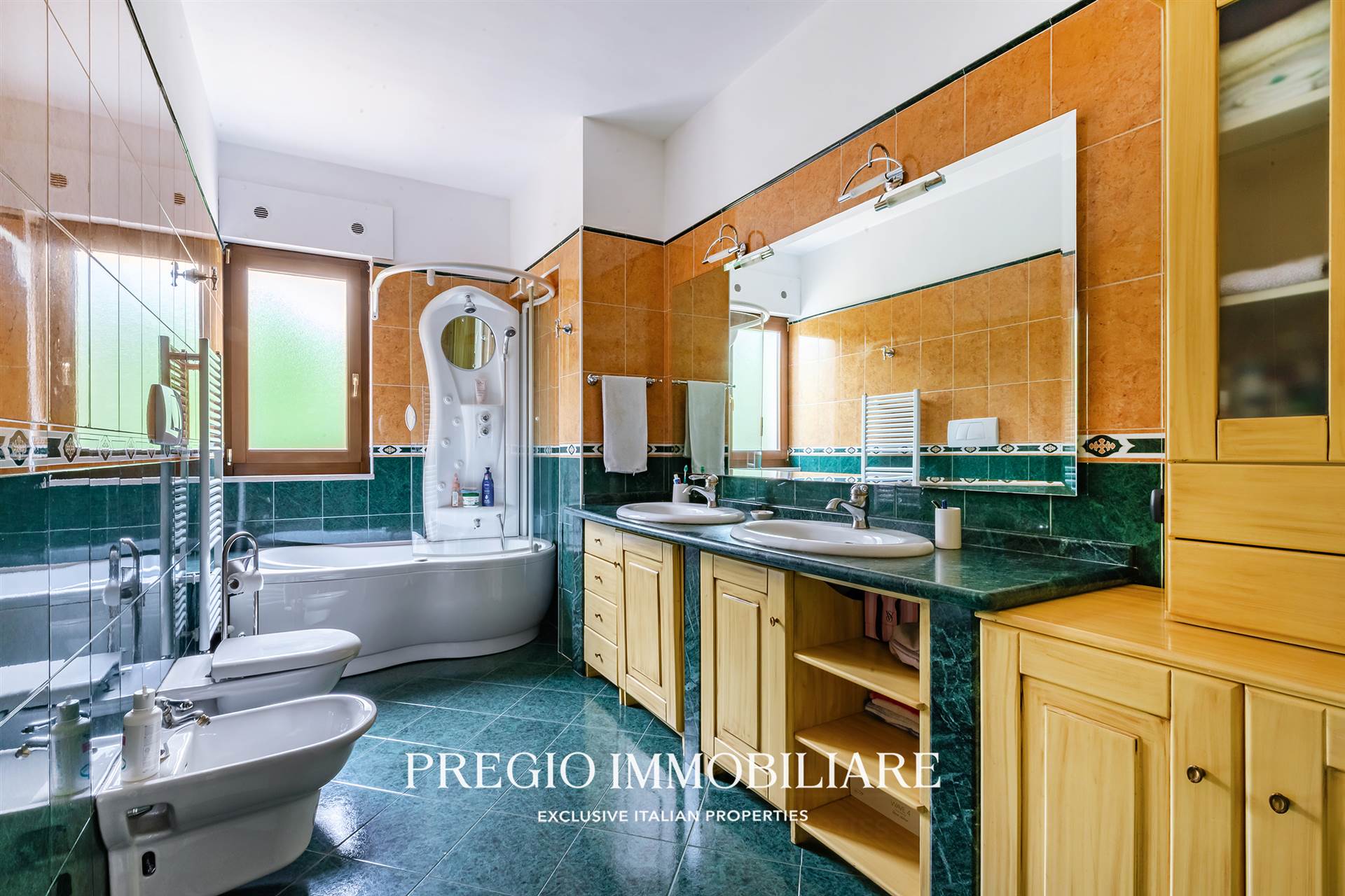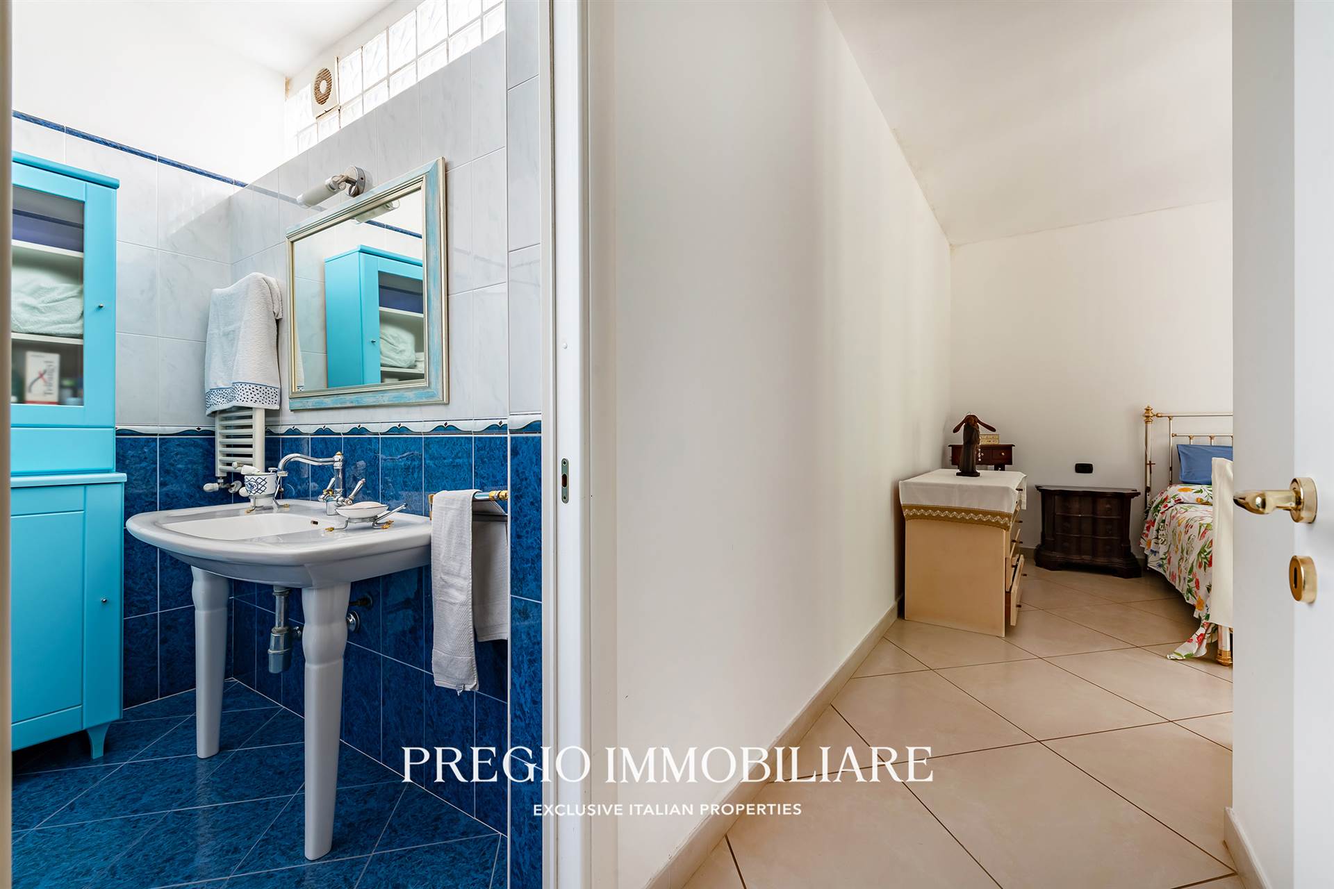 La zona notte comprende tre camere da letto: una suite padronale con bagno privato e due matrimoniali con un secondo bagno, di generose dimensioni e finestrato che serve le restanti camere.